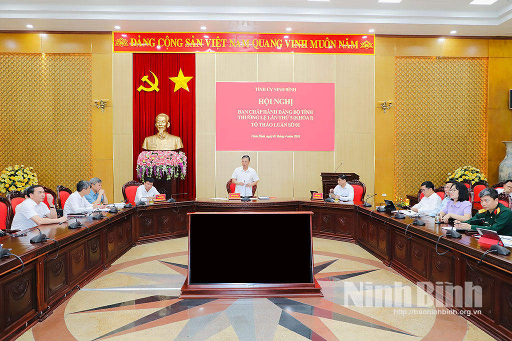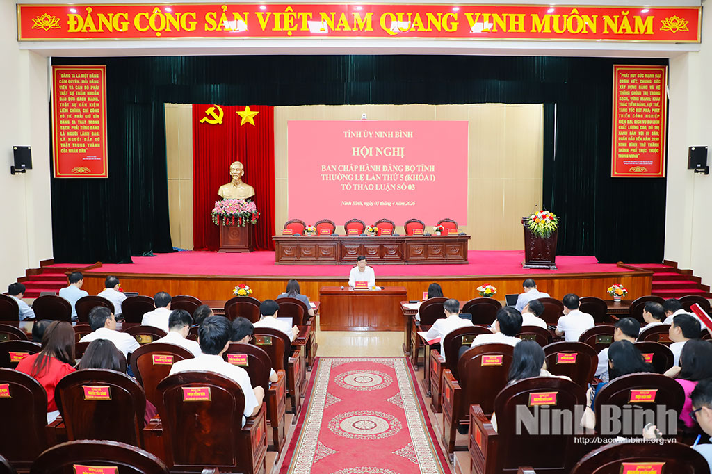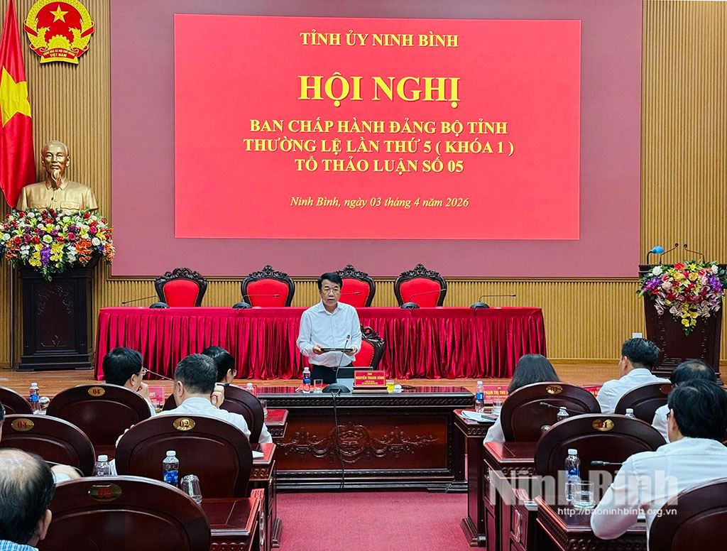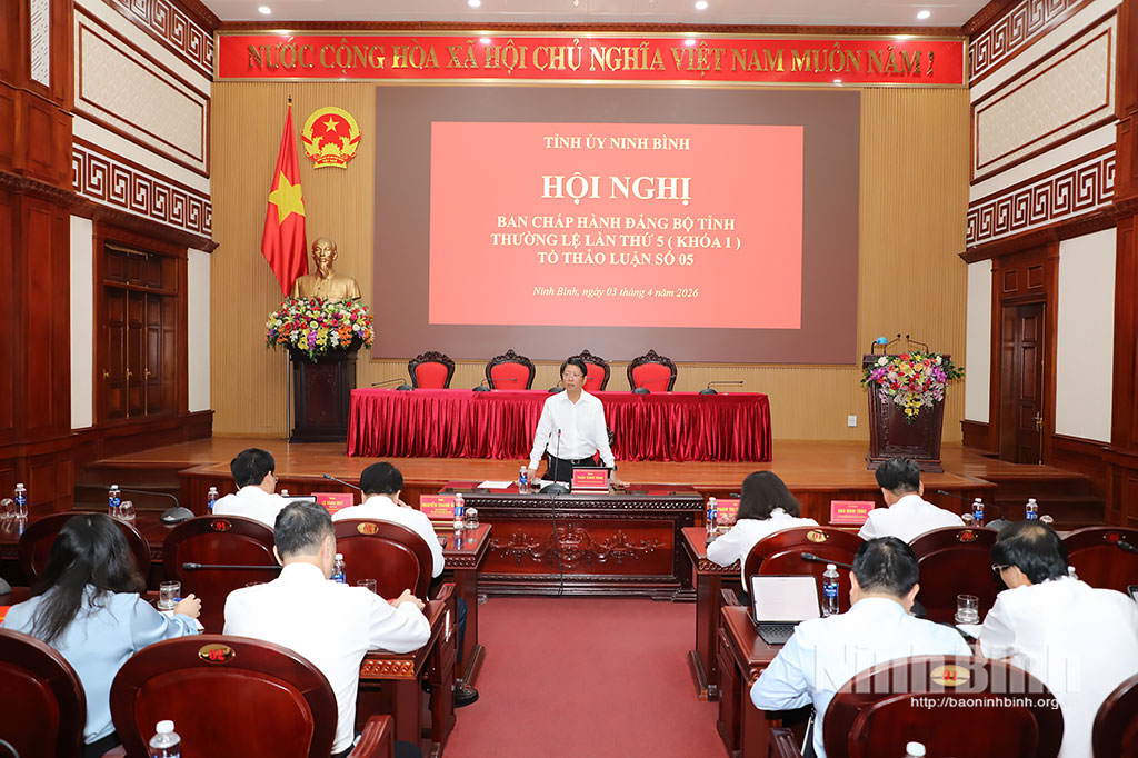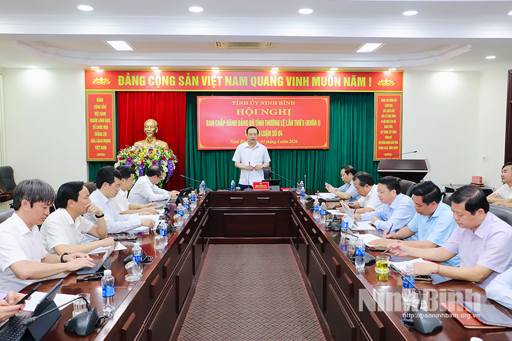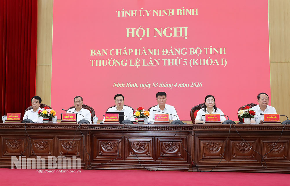 Phát biểu khai mạc hội nghị, đồng chí Bí thư Tỉnh ủy Trần Huy Tuấn cho biết: Hội nghị Ban Chấp hành lần thứ 5 diễn ra trong bối cảnh toàn Đảng bộ tỉnh đang khẩn trương triển khai thực hiện Nghị quyết Đại hội XIV của Đảng và Nghị quyết Đại hội Đảng bộ tỉnh nhiệm kỳ 2025-2030, với yêu cầu rất cao về đổi mới phương thức lãnh đạo, nâng cao năng lực tổ chức thực hiện, tạo chuyển biến rõ nét trong phát triển kinh tế - xã hội, xây dựng hệ thống chính trị trong sạch, vững mạnh. Tại hội nghị, Ban Chấp hành Đảng bộ tỉnh tập trung thảo luận, cho ý kiến vào 3 nội dung lớn, gồm: Dự thảo báo cáo kết quả công tác quý I, nhiệm vụ trọng tâm quý II năm 2026 của Tỉnh ủy; dự thảo Quy chế làm việc của Ban Chấp hành Đảng bộ tỉnh khóa I, nhiệm kỳ 2025-2030 (điều chỉnh, bổ sung); việc điều chỉnh chủ trương đầu tư Dự án xây dựng tuyến đường bộ cao tốc Ninh Bình - Hải Phòng (đoạn qua tỉnh Ninh Bình).