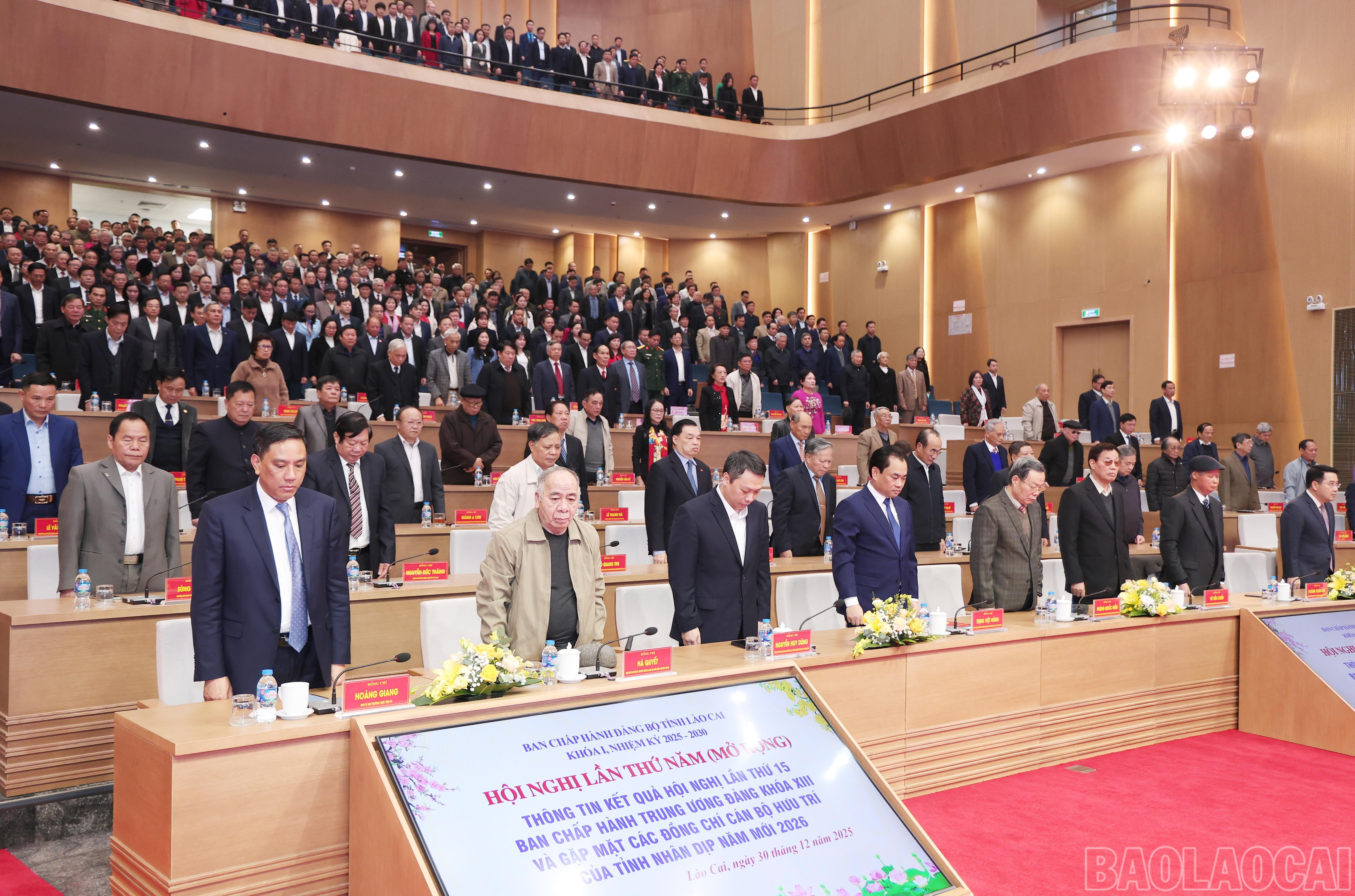 Mở đầu hội nghị, các đại biểu đã dành một phút mặc niệm tưởng nhớ các nạn nhân trong vụ tai nạn giao thông xảy ra tại xã Phình Hồ ngày 27/12.