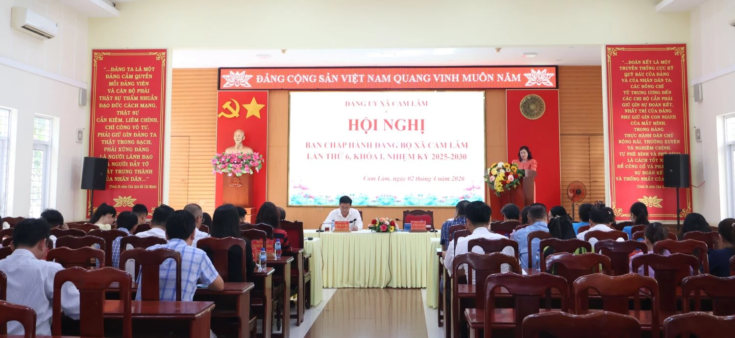 Chiều 2-4, Ban Chấp hành Đảng bộ xã Cam Lâm tổ chức hội nghị lần thứ 6, khóa I, nhiệm kỳ 2025 - 2030 nhằm đánh giá kết quả thực hiện nhiệm vụ phát triển kinh tế - xã hội, quốc phòng - an ninh quý I; triển khai nhiệm vụ quý II/2026.