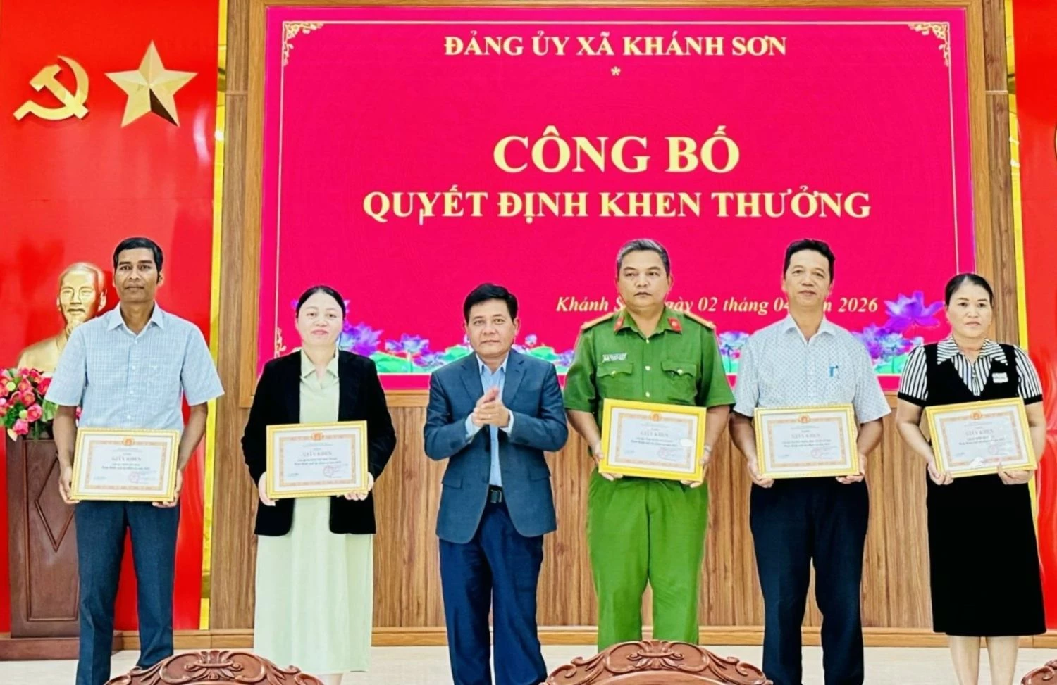 Dịp này, Đảng ủy xã Khánh Sơn tặng giấy khen cho 5 tập thể và 41 cá nhân hoàn thành xuất sắc nhiệm vụ năm 2025.