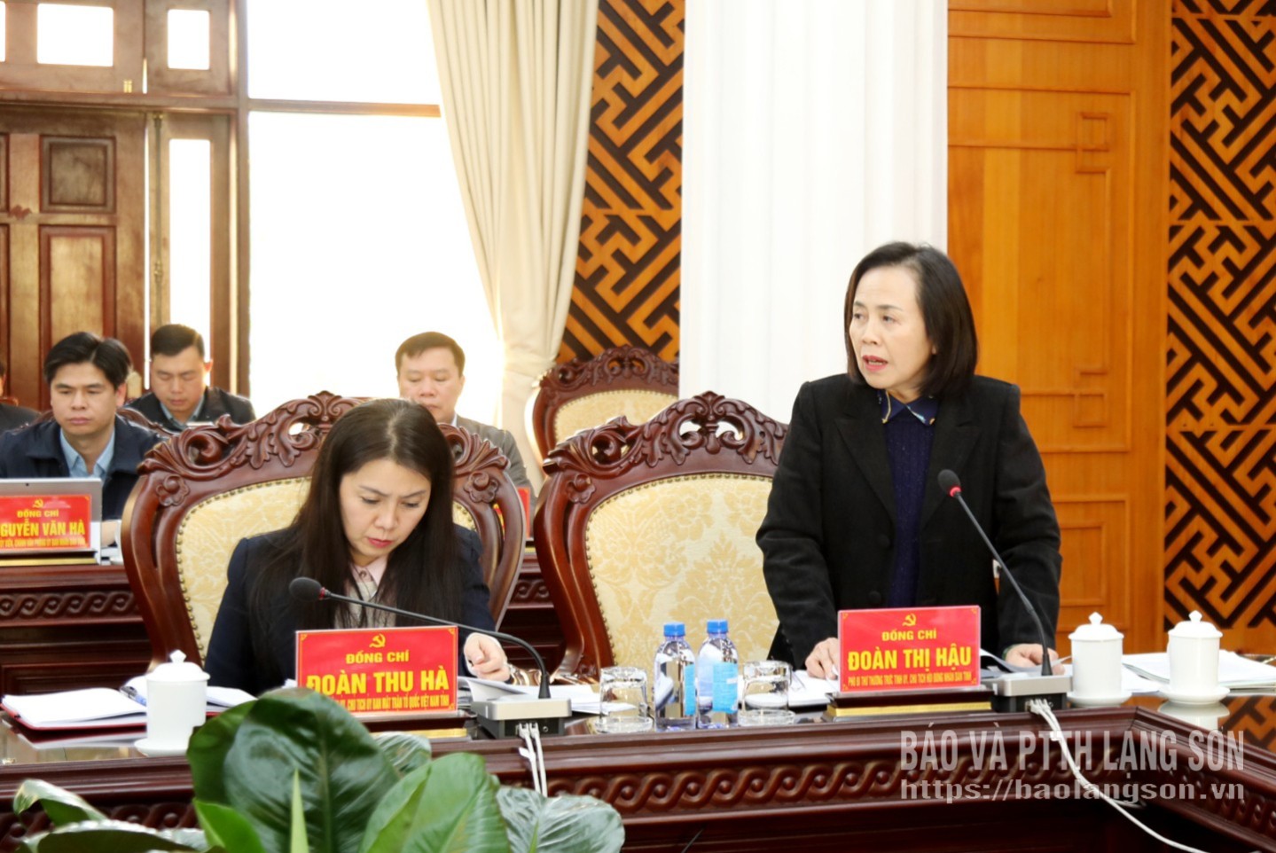 Đồng chí Đoàn Thị Hậu, Phó Bí thư Thường trực Tỉnh ủy, Chủ tịch HĐND tỉnh phát biểu điều hành thảo luận