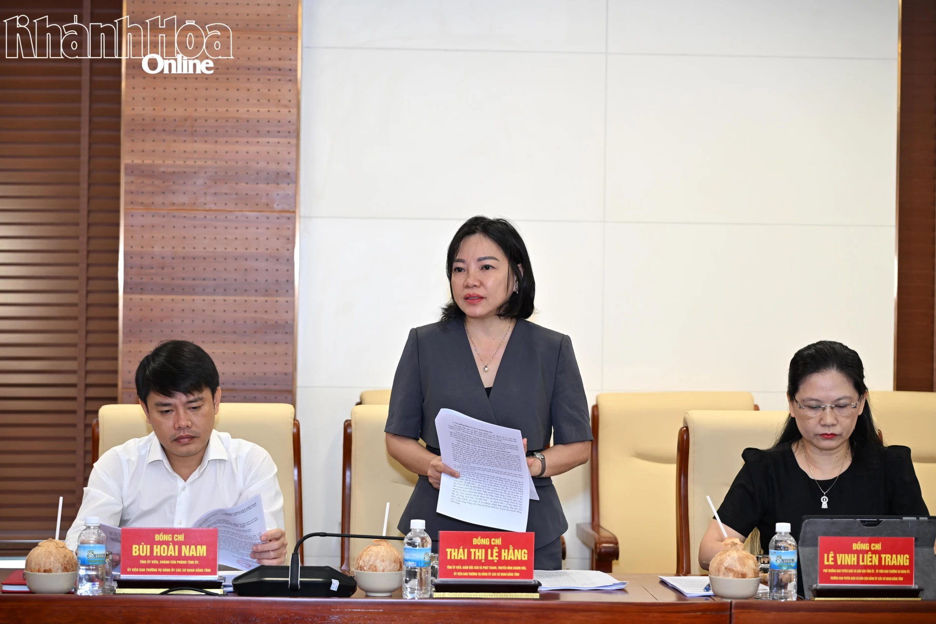 Đồng chí Thái Thị Lệ Hằng - Tỉnh ủy viên, Giám đốc Báo và Phát thanh, Truyền hình Khánh Hòa phát biểu.
