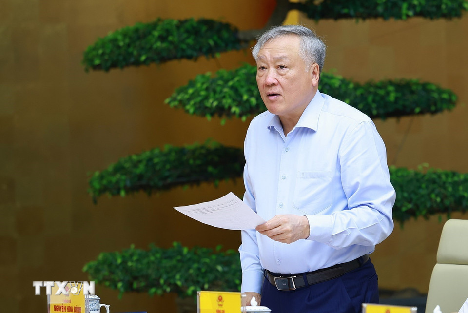 Phó Bí thư Thường trực Đảng ủy Chính phủ, Phó Thủ tướng Thường trực Nguyễn Hòa Bình phát biểu. (Ảnh: Dương Giang/TTXVN)