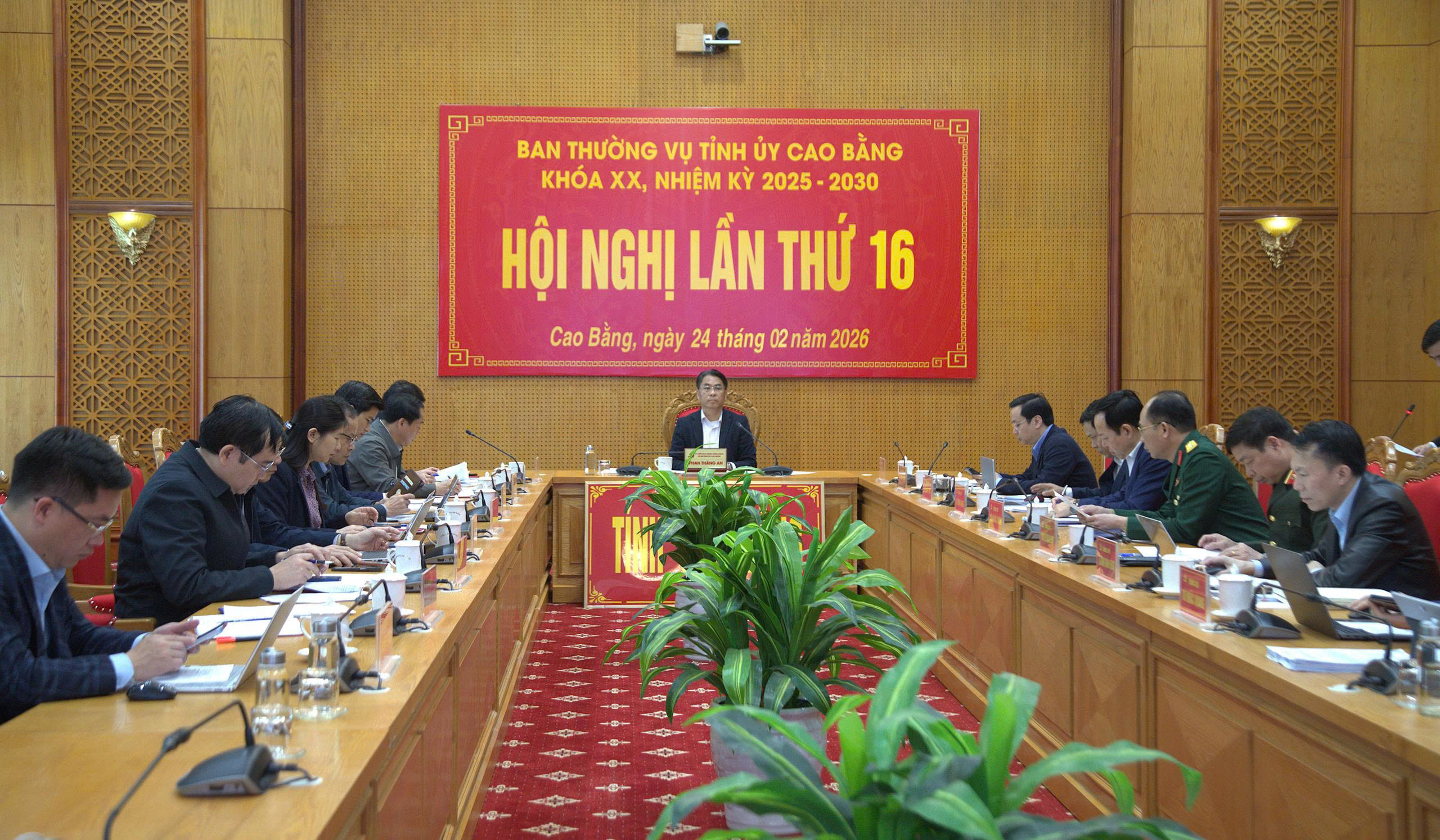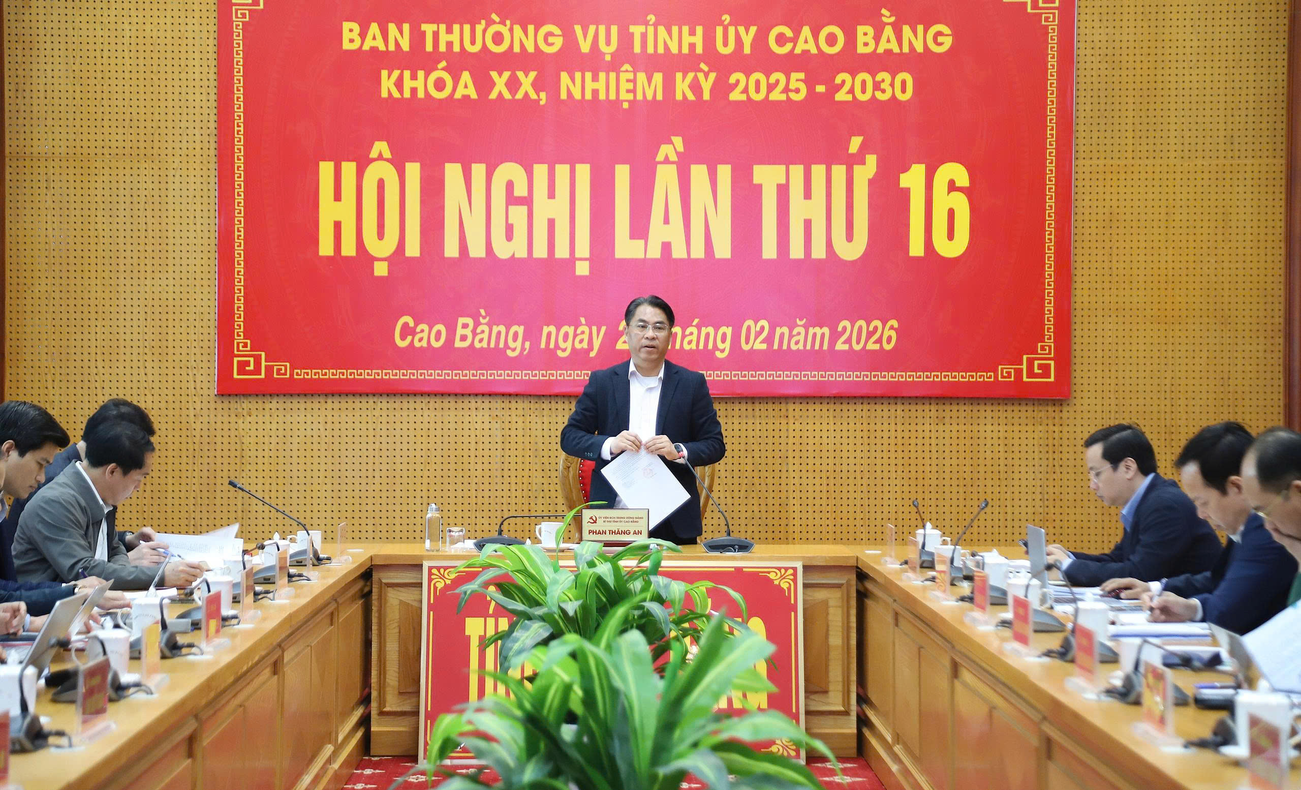 Phát biểu kết luận, Bí thư Tỉnh ủy Phan Thăng An cơ bản thống nhất với nội dung các tờ trình, báo cáo tại hội nghị. Nhấn mạnh nội dung điều chỉnh quy hoạch tỉnh thời kỳ 2021 - 2030, tầm nhìn đến năm 2050 là nội dung rất quan trọng, thể hiện tầm nhìn lâu dài, đồng chí đề nghị: điều chỉnh quy hoạch sử dụng đất phải điều chỉnh số liệu tăng thêm phù hợp với thực tế, làm rõ mối liên hệ khung trong bối cảnh mới sau sắp xếp đơn vị hành chính, phấn đấu vươn mình tích cực hơn, đạt tốc độ tăng trưởng cao hơn. Kịch bản phát triển giai đoạn 2026 - 2030 phải dựa trên các quan điểm chỉ đạo xuyên suốt: Tăng trưởng xanh và bền vững, không đánh đổi môi trường lấy tăng trưởng kinh tế. Phát triển kinh tế phải dựa trên nền tảng bảo vệ hệ sinh thái rừng và cảnh quan địa chất đặc sắc. Chuyển từ khai thác tài nguyên thô sang khai thác vị thế địa kinh tế (cửa ngõ logistics) và tài nguyên văn hóa - du lịch. Lấy hạ tầng và công nghệ làm đột phá: Hạ tầng giao thông (cao tốc) mở đường, hạ tầng số thúc đẩy tốc độ và hiệu quả. Xác lập mô hình tăng trưởng đặc thù, chủ đạo của tỉnh trong giai đoạn 2026 - 2030 là mô tăng trưởng kép: xanh, số và bao trùm. Giao Đảng ủy UBND tỉnh chỉ đạo các cơ quan, đơn vị liên quan tiếp thu ý kiến của các đại biểu, tiếp tục bổ sung, hoàn thiện hồ sơ điều chỉnh Quy hoạch tỉnh Cao Bằng thời kỳ 2021 - 2030, tầm nhìn đến năm 2050 đảm bảo chất lượng, tiến độ và tính khả thi để trình Kỳ họp HĐND theo quy định.