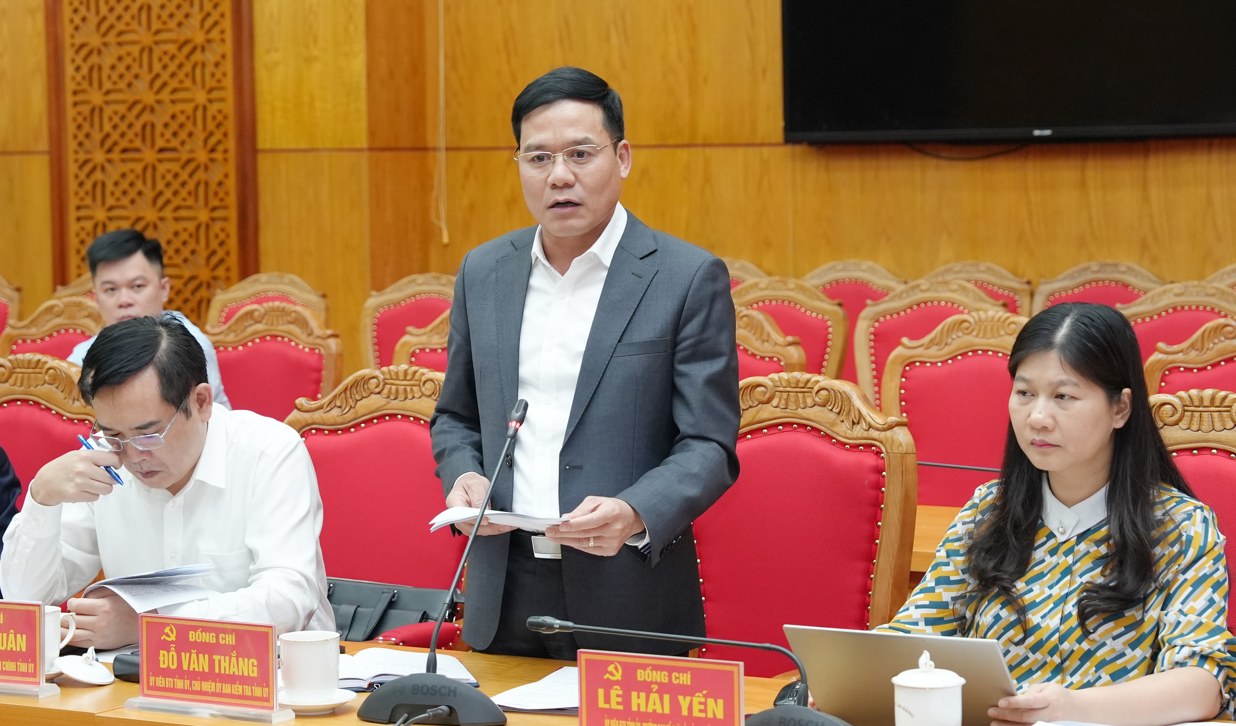 Đồng chí Đỗ Văn Thắng, Ủy viên Ban Thường vụ Tỉnh ủy, Chủ nhiệm Ủy ban Kiểm tra Tỉnh ủy phát biểu tại hội nghị.