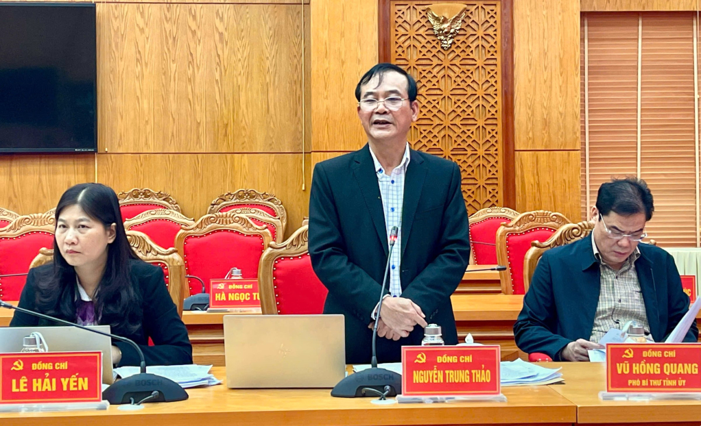 Đồng chí Nguyễn Trung Thảo, Ủy viên Ban Thường vụ Tỉnh ủy, Chủ nhiệm Ủy ban Kiểm tra Tỉnh ủy phát biểu tại hội nghị.