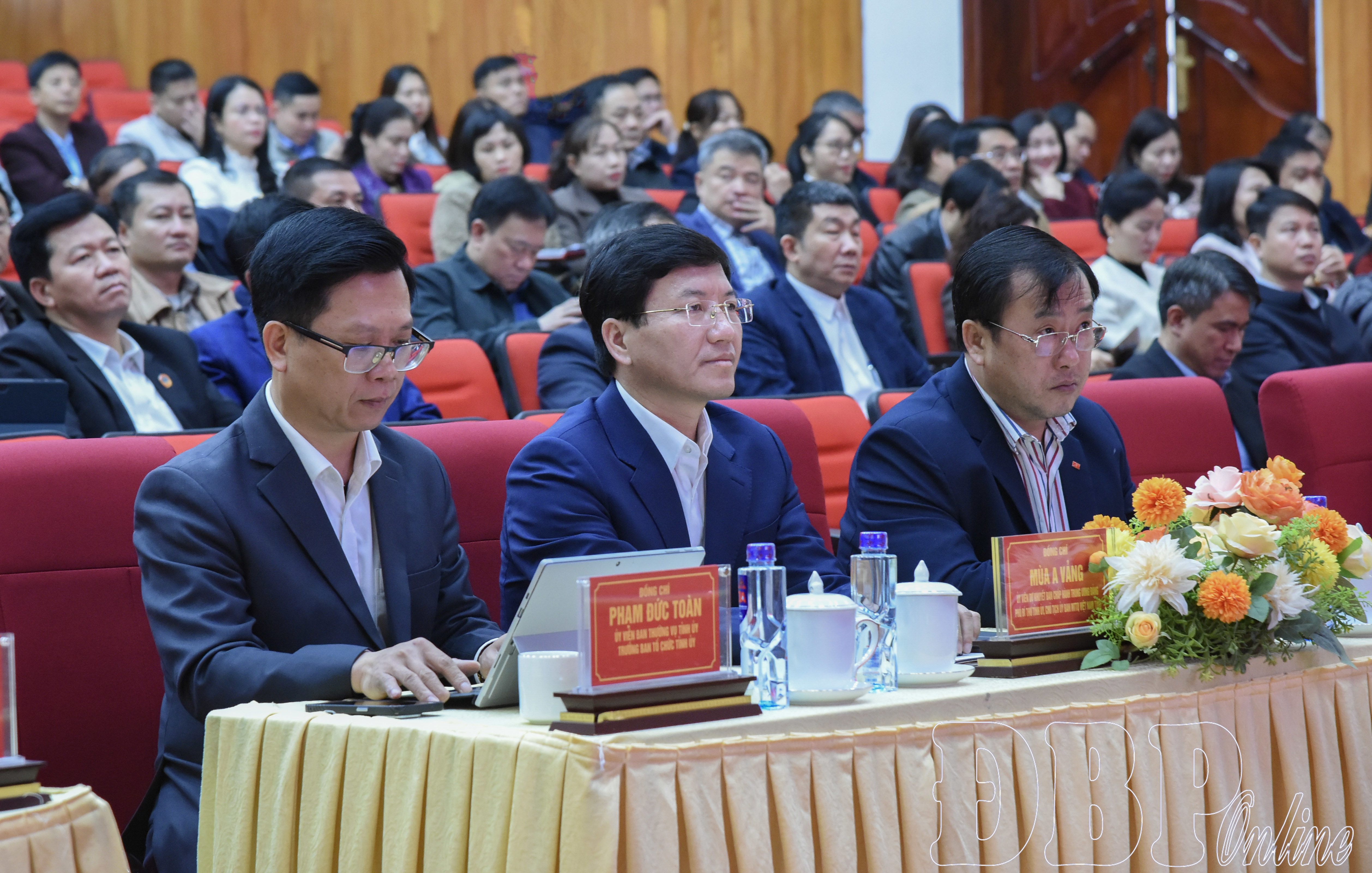 Dự hội nghị tại điểm cầu tỉnh Điện Biên có đồng chí Mùa A Vảng, Ủy viên dự khuyết Trung ương Đảng, Phó Bí thư Tỉnh ủy, Chủ tịch Ủy ban MTTQ Việt Nam tỉnh; các đồng chí trong Ban Thường vụ Tỉnh ủy, Ban Chấp hành Đảng bộ tỉnh; lãnh đạo HĐND, UBND, Ủy ban MTTQ Việt Nam tỉnh; các đồng chí báo cáo viên cấp tỉnh và đại diện lãnh đạo các sở, ban, ngành, đoàn thể tỉnh.