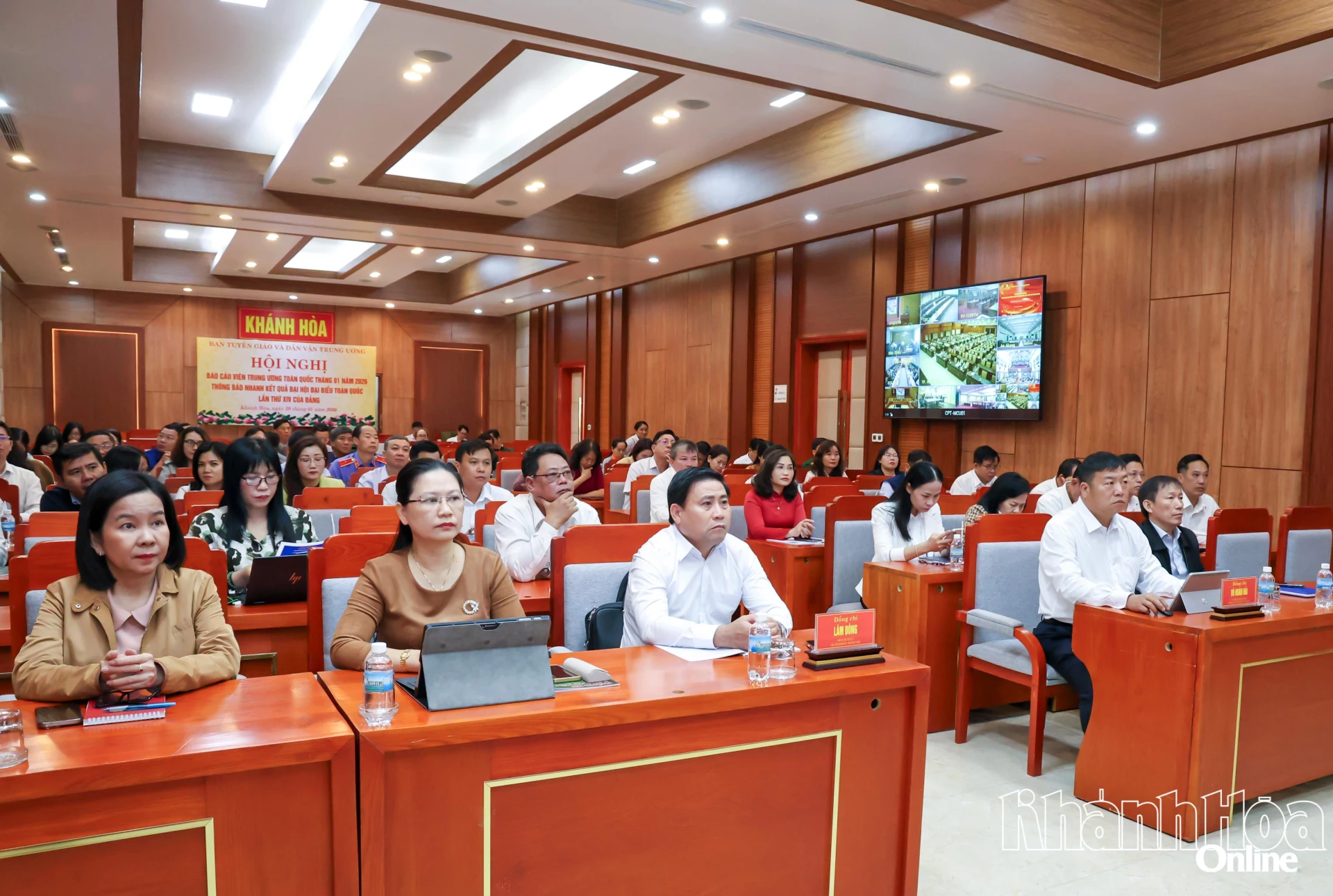 Dự hội nghị tại điểm cầu Tỉnh ủy Khánh Hòa có các đồng chí: Lâm Đông - Phó Bí thư Tỉnh ủy, Chủ tịch HĐND tỉnh; Võ Hoàn Hải - Ủy viên Ban Thường vụ Tỉnh ủy, Trưởng ban Tuyên giáo và Dân vận Tỉnh ủy.