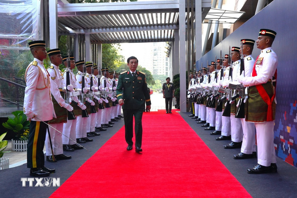 Đại tướng Phan Văn Giang, Bộ trưởng Quốc phòng Việt Nam đến Hội nghị. (Ảnh: TTXVN phát)