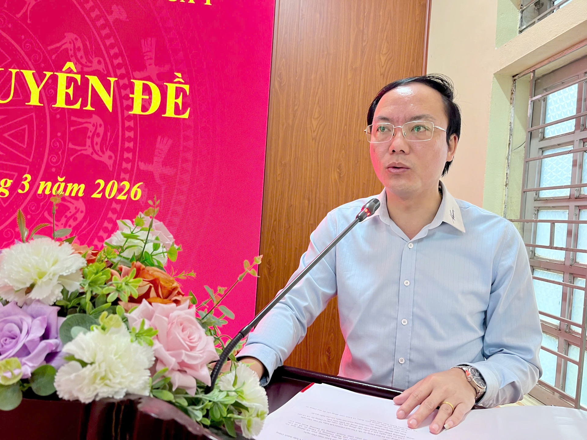 Đồng chí Đoàn Văn Đạt - Phó Bí thư Thường Trực Đảng ủy thông qua tờ trình số 30-TTr/ĐU ngày 4/3/2026 tại hội nghị.