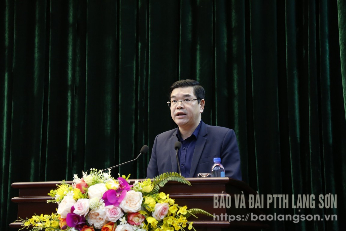 Phát biểu tại hội nghị, đồng chí Phó Bí thư Thường trực Tỉnh ủy chúc mừng các đồng chí được tin tưởng giao nhiệm vụ mới.