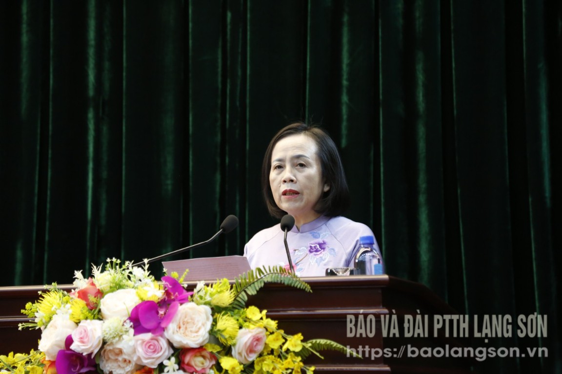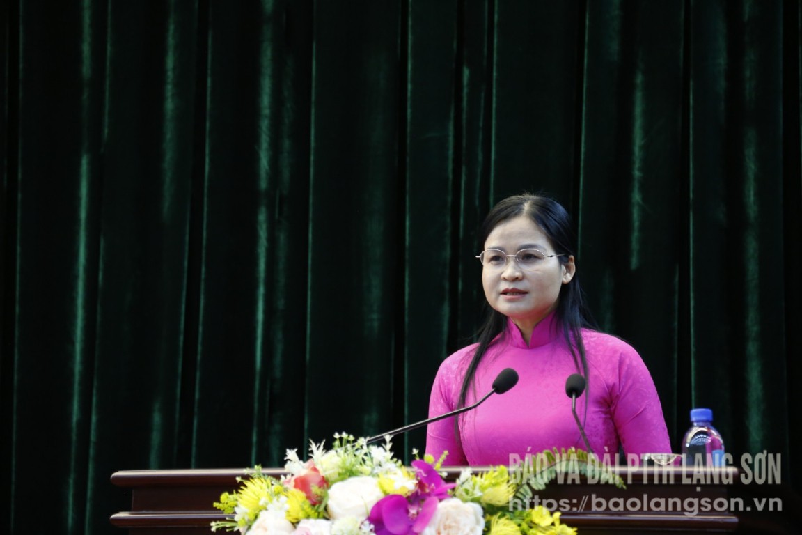 Đồng chí Đoàn Thị Hậu, Phó Bí thư Thường trực Tỉnh ủy, Chủ tịch HĐND tỉnh phát biểu giao nhiệm vụ mới tại hội nghị