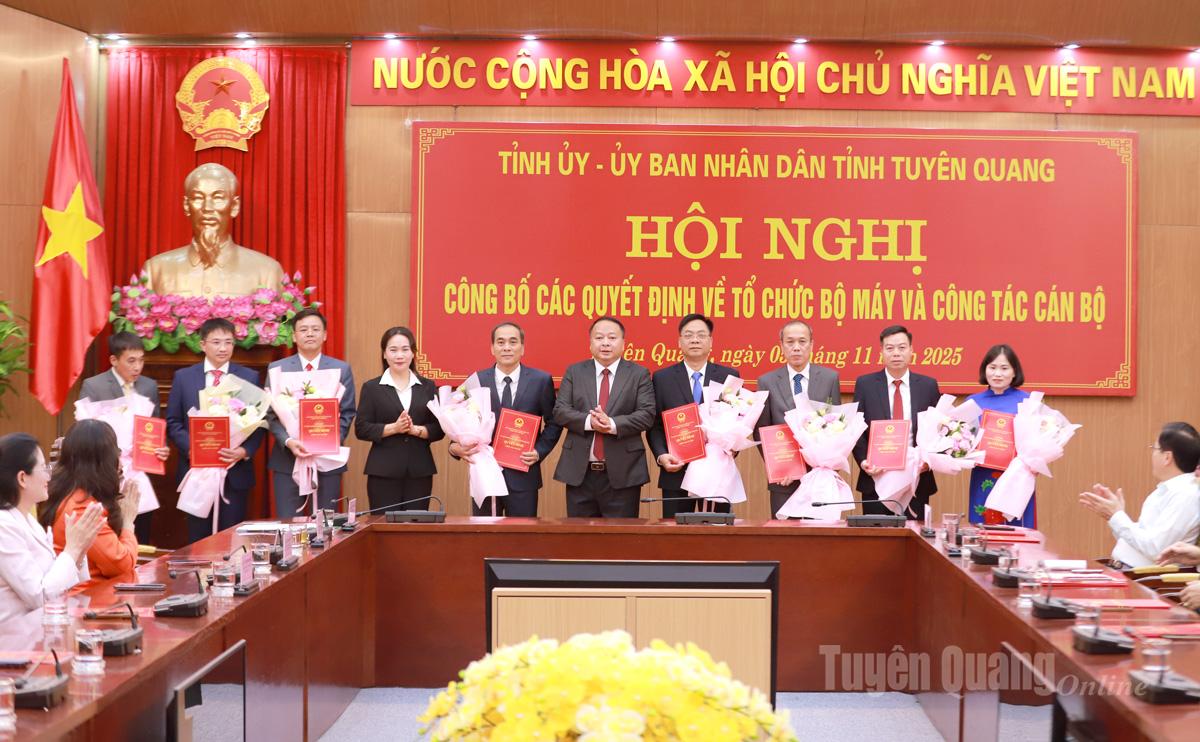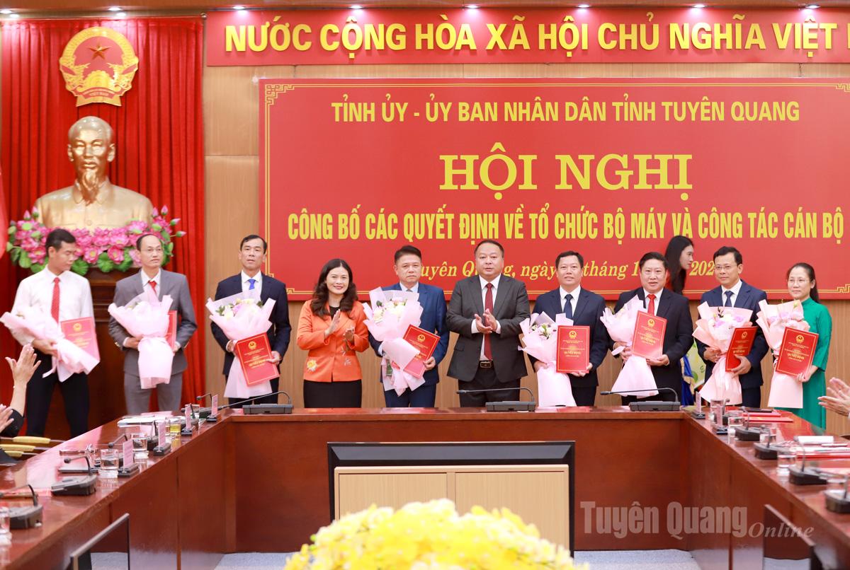 Công bố các Quyết định về việc: Tiếp nhận và bổ nhiệm đồng chí Ngô Xuân Nam, Phó Bí thư Chuyên trách Đảng ủy UBND tỉnh giữ chức Chánh thanh tra tỉnh Tuyên Quang; điều động, bổ nhiệm ông Nguyễn Thiện Tuyên, Giám đốc Ban quản lý Dự án xây dựng công trình giao thông tỉnh Tuyên Quang trước hợp nhất giữ chức Giám đốc Ban điều phối các dự án vốn nước ngoài tỉnh Tuyên Quang; điều động, bổ nhiệm ông Trần Việt Hưng, Phó Giám đốc Sở Xây dựng giữ chức Giám đốc Ban quản lý dự án đầu tư xây dựng công trình số 1 tỉnh Tuyên Quang.
