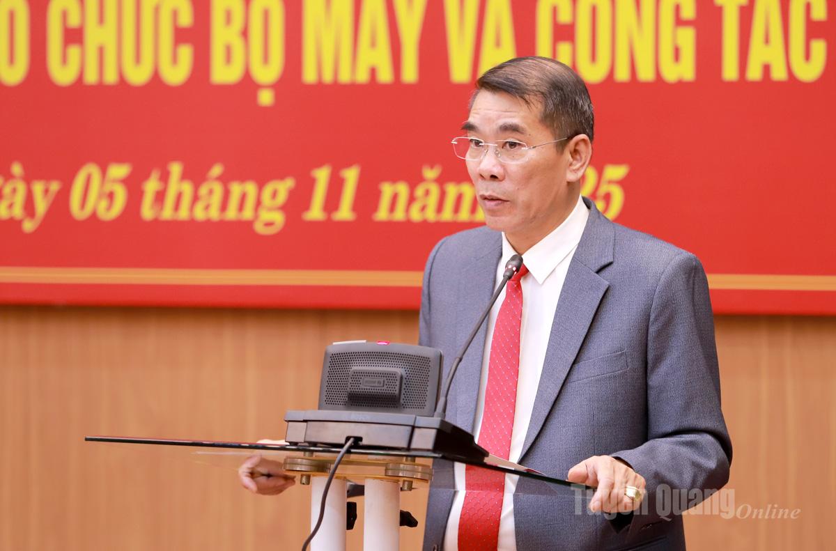 Phát biểu giao nhiệm vụ tại hội nghị, Chủ tịch UBND tỉnh Phan Huy Ngọc nhấn mạnh các quyết định về công tác tổ chức, bộ máy được công bố tại buổi lễ nhằm tiếp tục thực hiện chủ trương chung của Đảng, Nhà nước về sắp xếp, tinh gọn bộ máy hoạt động hiệu lực, hiệu quả. Chủ tịch UBND tỉnh yêu cầu các cơ quan được hợp nhất, các đồng chí được điều động, bổ nhiệm giữ chức vụ lãnh đạo các cơ quan sau hợp nhất sớm bàn giao công việc để bắt tay ngay vào thực hiện nhiệm vụ ở đơn vị mới; rà soát lại quy chế làm việc, quy trình trong công tác cán bộ ở cơ quan, đơn vị mới, ổn định tư tưởng cán bộ, xây dựng đơn vị đoàn kết. Trong quá trình triển khai thực hiện nhiệm vụ cần làm tốt công tác giao việc, phân công công việc rõ ràng theo tinh thần “6 rõ” của Thủ tướng Chính phủ gắn với trách nhiệm cá nhân, người đứng đầu. Tiếp tục học tập, tu dưỡng, rèn luyện chuyên môn, nghiệp vụ gắn với trách nhiệm nêu gương của người đứng đầu. Tập trung hoàn thành các nhiệm vụ được giao, nỗ lực hoàn thành các mục tiêu tăng trưởng của tỉnh trong năm 2025.