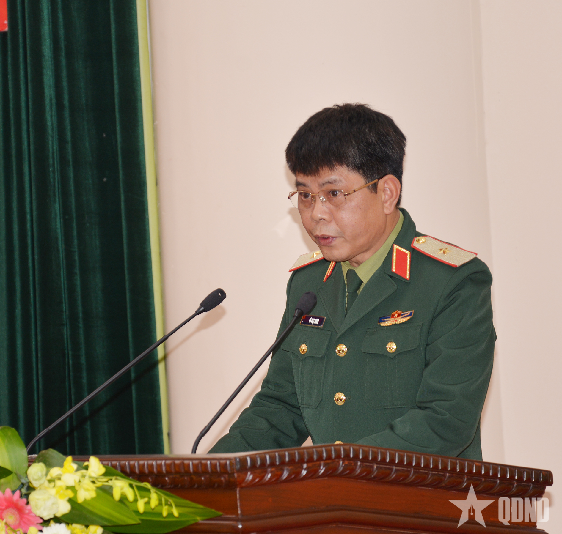 Thiếu tướng Vũ Việt Hùng báo cáo tại hội nghị. Ảnh: KIM NGỌC