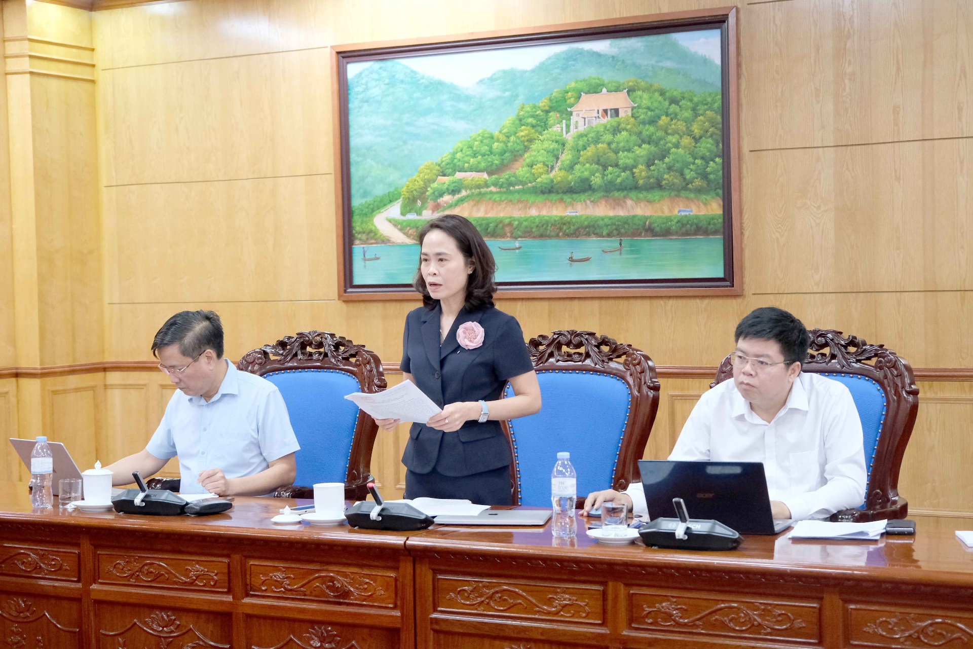 Đồng chí Lê Thị Hường - Ủy viên Ban Thường vụ, Trưởng Ban Tổ chức Tỉnh ủy phát biểu tại hội nghị.