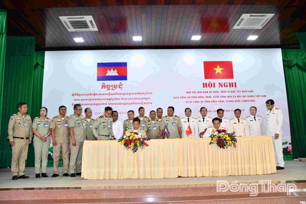 Hội nghị hợp tác bảo đảm an ninh, trật tự khu vực biên giới giữa Công an tỉnh Đồng Tháp và Ty Công an tỉnh Prey Veng, Vương quốc Campuchia.