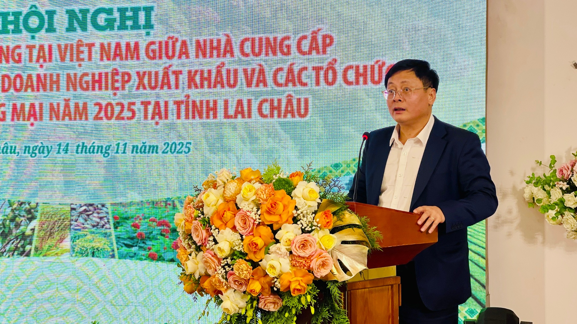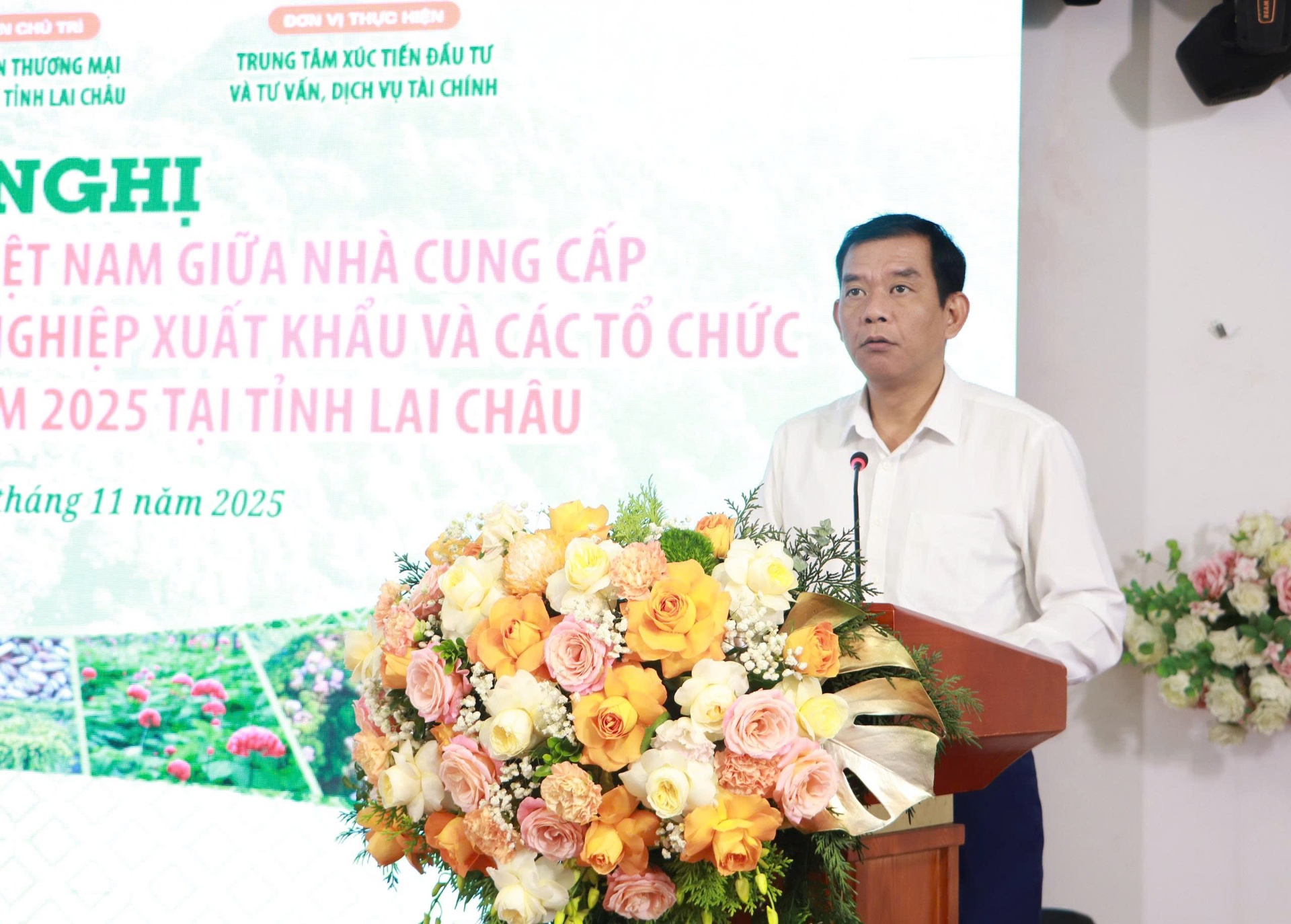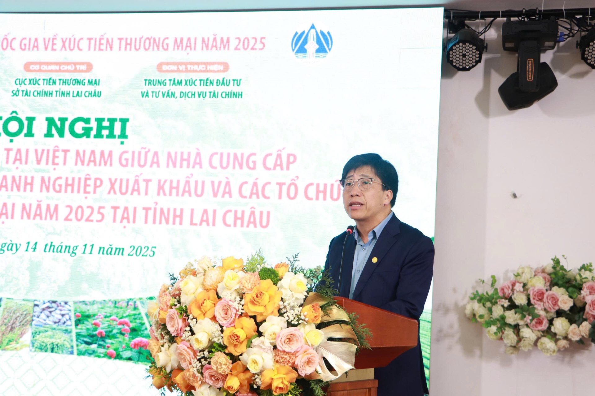 Đồng chí Nguyễn Đình Hùng - Phó Giám đốc Sở Tài chính Lai Châu thông qua kết quả hoạt động xúc tiến thương mại vùng Tây Bắc 9 tháng đầu năm 2025.