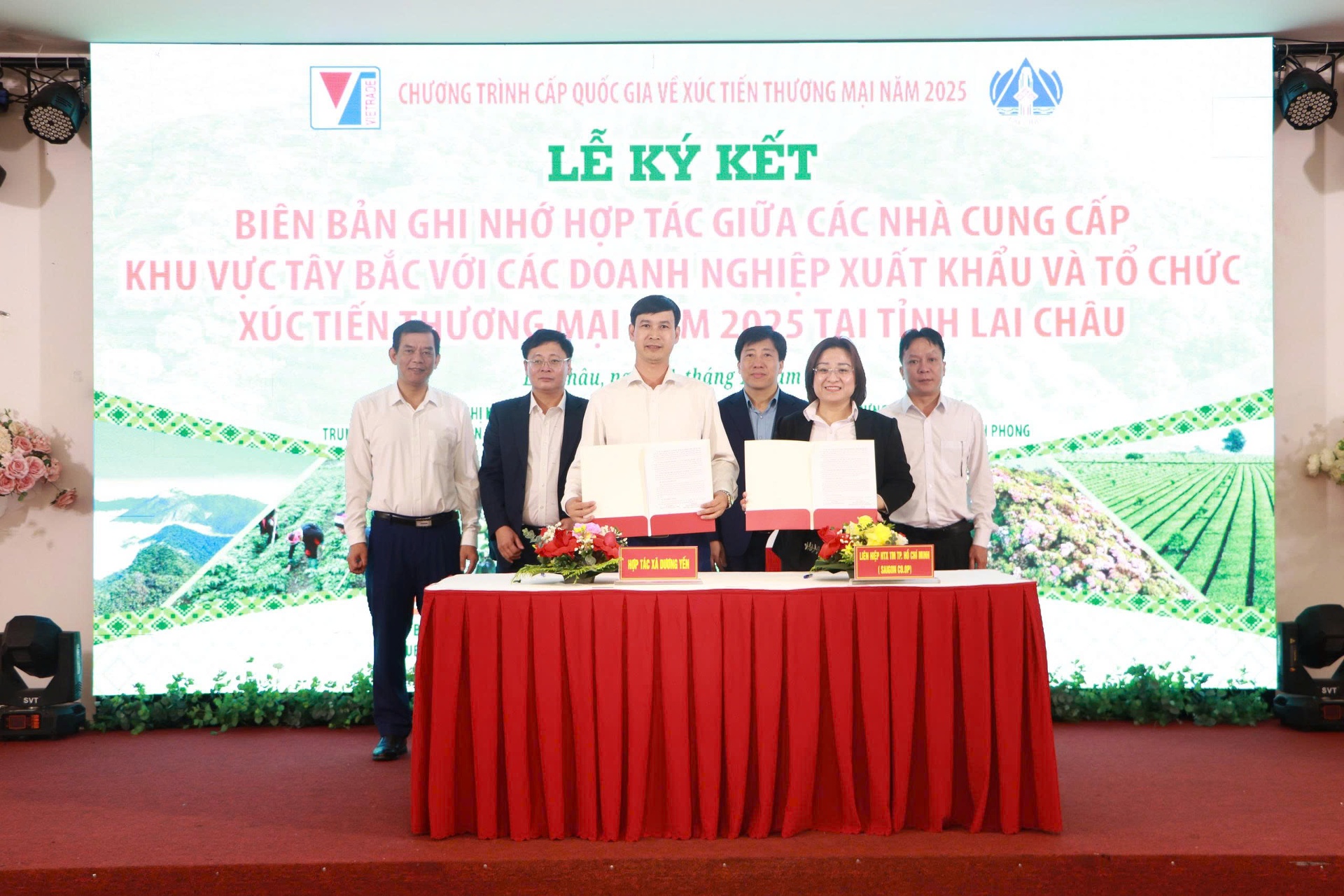 Hội nghị cũng đã tổ chức Lễ ký kết Biên bản ghi nhớ hợp tác giữa các đơn vị, doanh nghiệp về Hỗ trợ tiêu thụ sản phẩm nông sản của tỉnh Lai Châu nhằm tăng cường mối liên kết, hỗ trợ tiêu thụ sản phẩm, mở rộng thị trường.