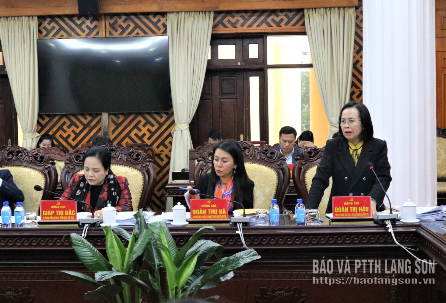 Đồng chí Đoàn Thị Hậu, Phó Bí thư Thường trực Tỉnh ủy, Chủ tịch HĐND tỉnh trình bày báo cáo kiểm điểm của Ban Thường vụ Tỉnh ủy năm 2025