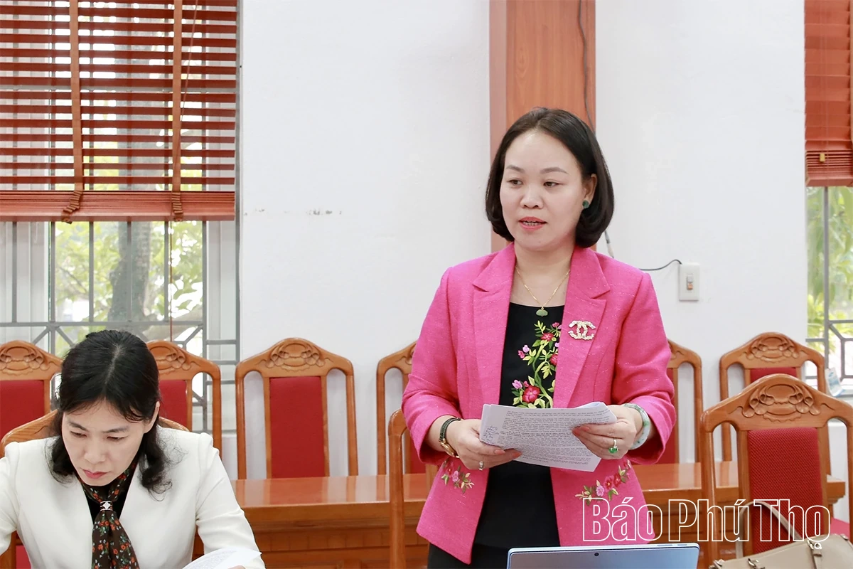 Đồng chí Nguyễn Thị Thanh Huyền - Ủy viên BTV Tỉnh ủy, Phó Bí thư Thường trực Chuyên trách Đảng ủy các cơ quan Đảng tỉnh phát biểu tại hội nghị