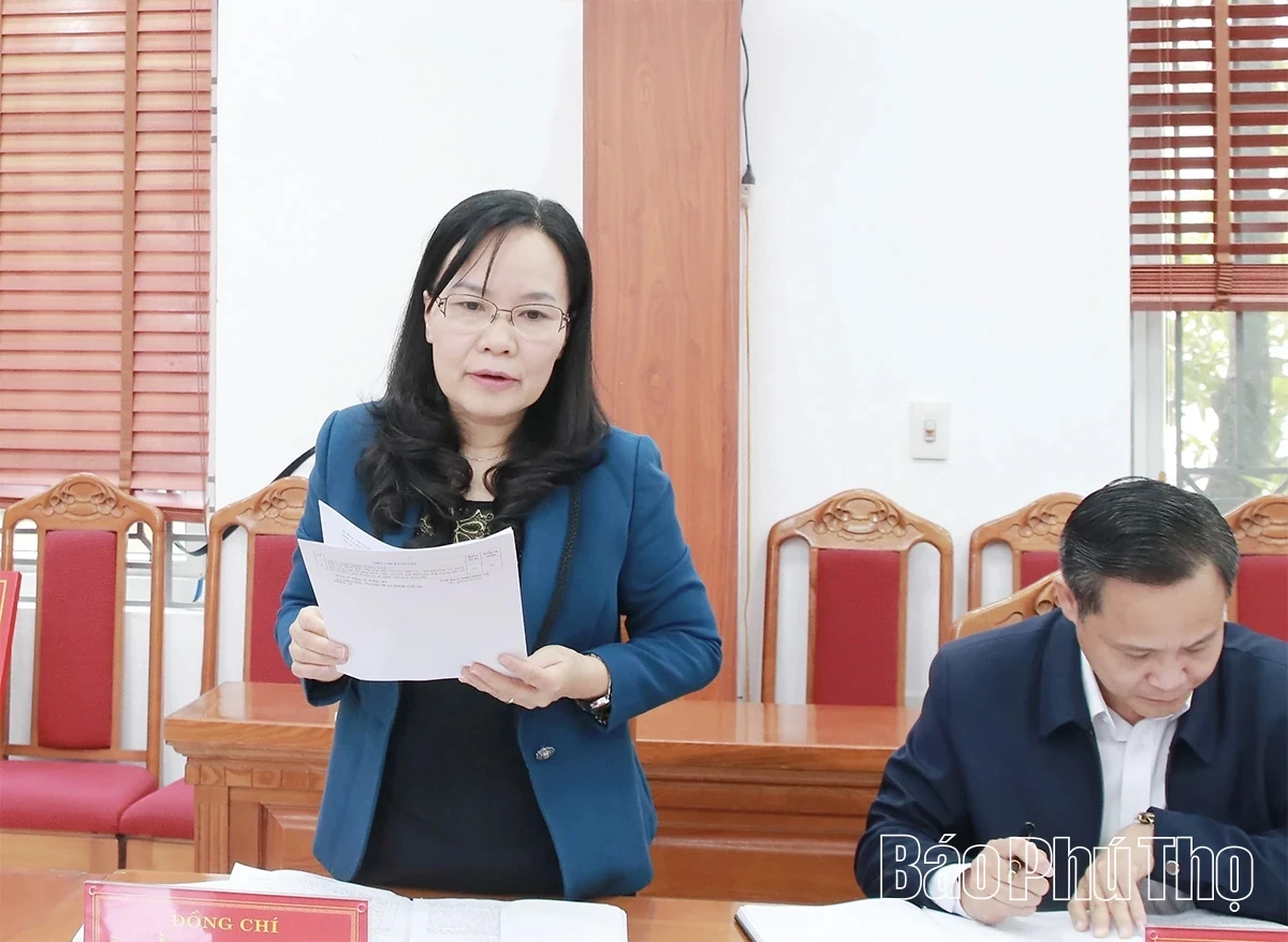 Đồng chí Bùi Thị Thu Hồng - Phó trưởng Ban Nội chính Tỉnh ủy phát biểu tại hội nghị