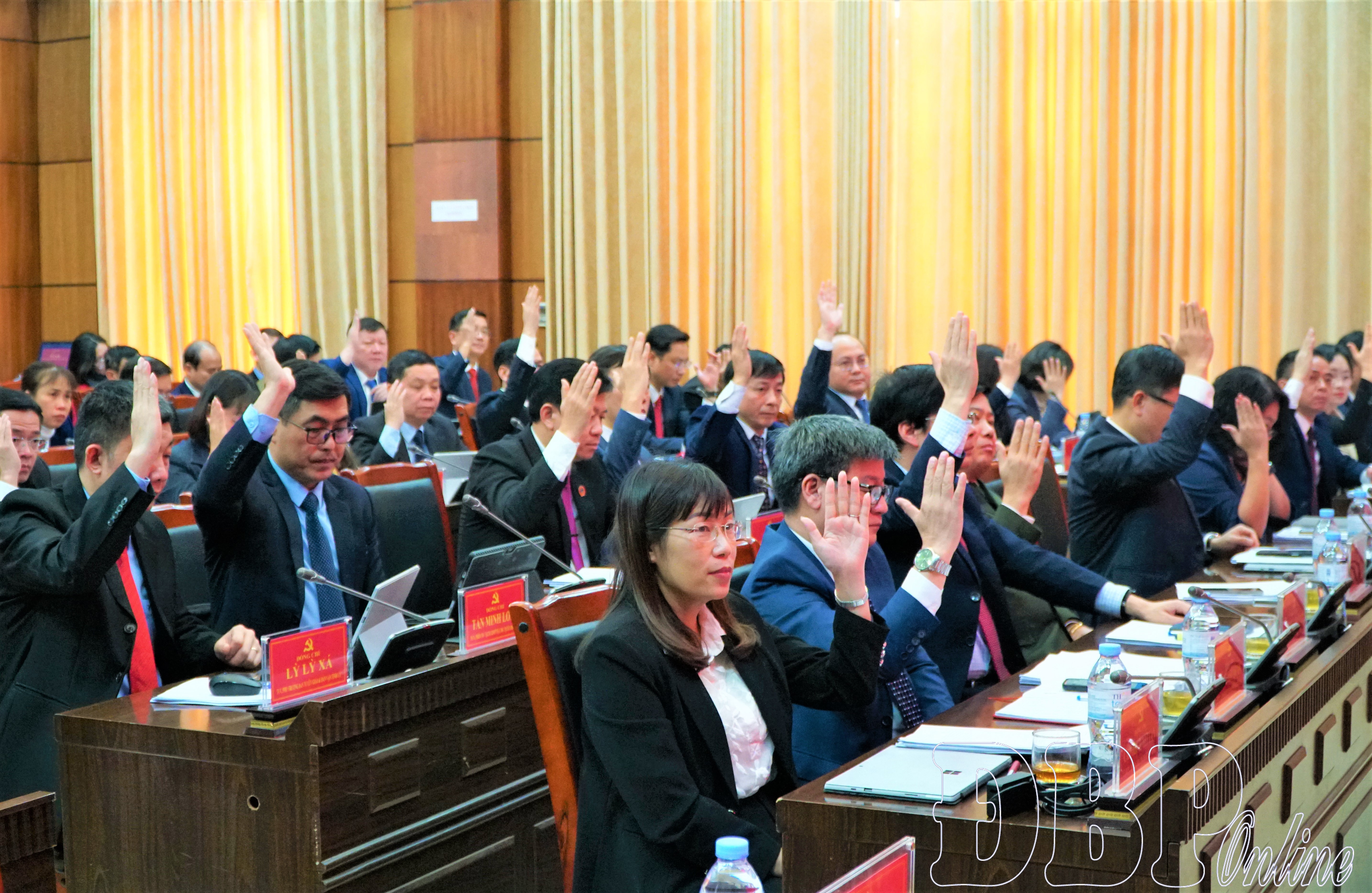 Đại biểu biểu quyết thông qua các dự thảo nghị quyết đã tiếp thu, chỉnh sửa.