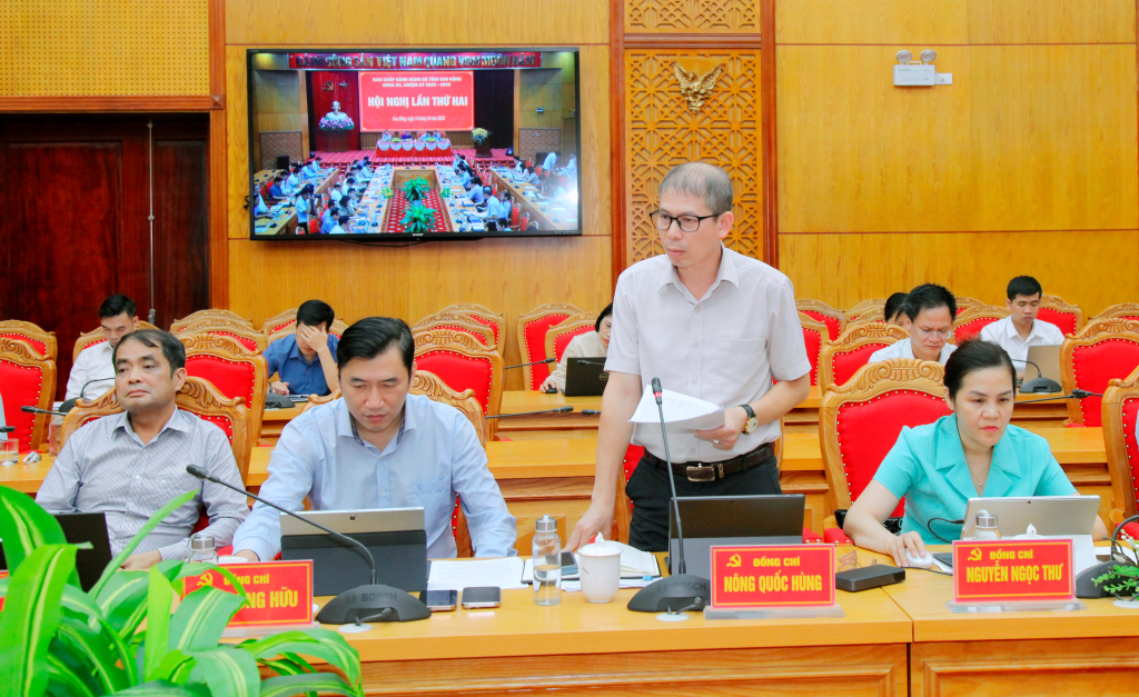 Phát biểu chỉ đạo, bên cạnh việc đánh giá cao nỗ lực của cả hệ thống chính trị, nhân dân trong khắc phục hậu quả thiên tai và phát triển kinh tế - xã hội, Bí thư Tỉnh ủy Quản Minh Cường thẳng thắn nhìn nhận, công tác giải ngân vốn đầu tư công vẫn là điểm nghẽn lớn nhất của tỉnh. Đề nghị các đồng chí Ủy viên Ban Thường vụ Tỉnh ủy, Ủy viên BCH Đảng bộ tỉnh nhận thức rõ vấn đề trách nhiệm, phát huy trí tuệ tập thể, cải thiện kết quả giải ngân, thúc đẩy tăng trưởng. Đồng chí yêu cầu các cấp, ngành, đơn vị triển khai 11 nhóm nhiệm vụ trọng tâm trong thời gian tới. Trước mắt, khẩn trương thực hiện các giải pháp khắc phục hậu quả mưa lũ, đảm bảo an sinh xã hội, nhanh chóng ổn định đời sống, sinh kế nhân dân. Tăng cường năng lực dự báo, cảnh báo; xây dựng các kịch bản, các giải pháp phòng, chống, ứng phó với các tình huống thiên tai, bão lũ phù hợp với đặc điểm của từng xã, phường. Tiếp tục chỉ đạo thực hiện tốt công tác quy hoạch, đầu tư kết cấu hạ tầng giao thông, đô thị, khu kinh tế, công nghiệp. Đẩy nhanh tiến độ các dự án giao thông trọng điểm: Cao tốc Đồng Đăng - Trà Lĩnh (giai đoạn 1, giai đoạn 2); hoàn thiện thủ tục dự án đường bộ cao tốc Bắc Kạn - Cao Bằng. Thực hiện chặt chẽ công tác quản lý tài chính, ngân sách. Các xã biên giới chủ động rà soát vị trí, địa điểm xây dựng trường nội trú liên cấp trên địa bàn tỉnh.