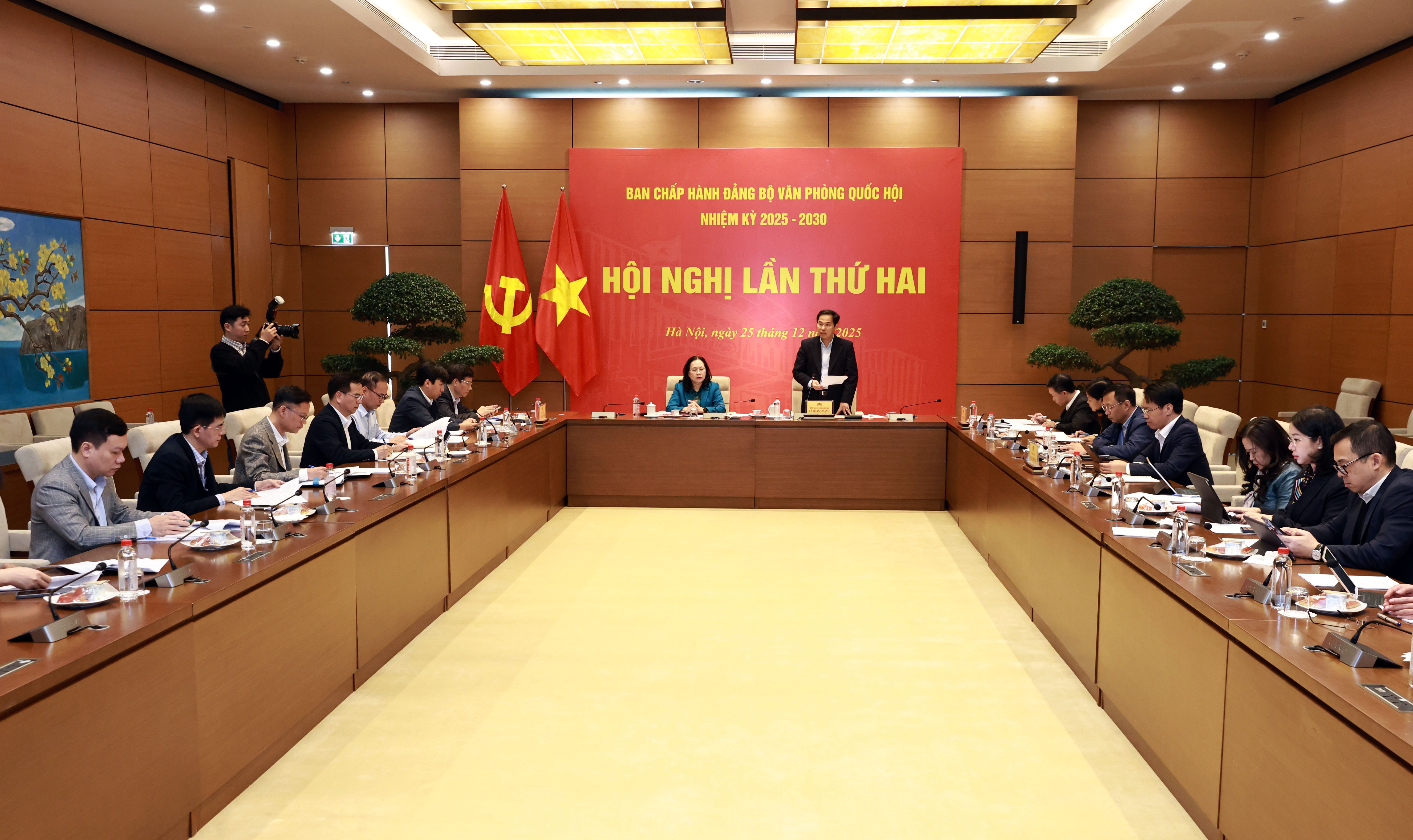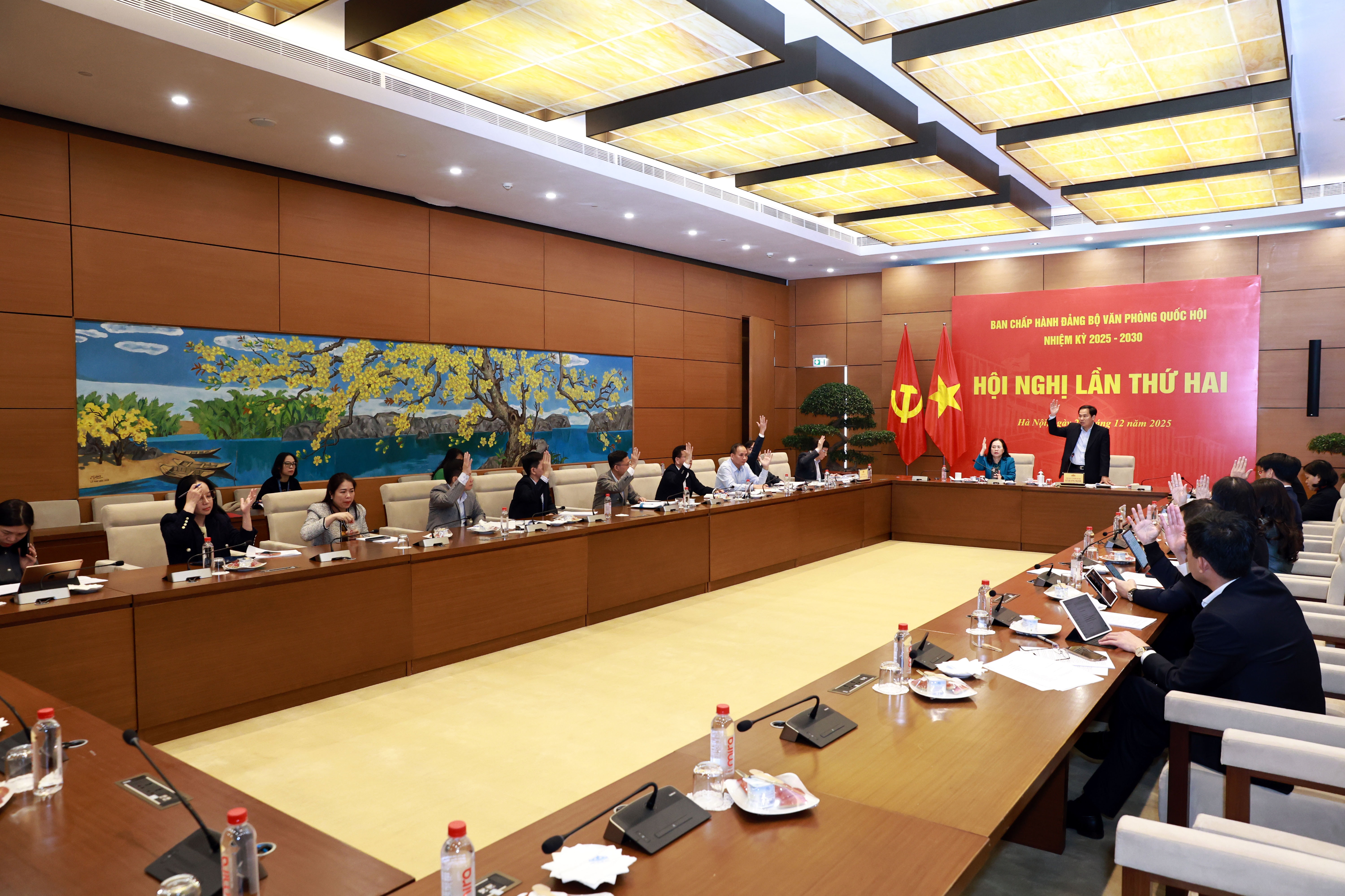 Tại Hội nghị, 100% đại biểu có mặt đã biểu quyết thông qua Nghị quyết Hội nghị lần thứ hai, Ban Chấp hành Đảng bộ Văn phòng Quốc hội nhiệm kỳ 2025 – 2030.