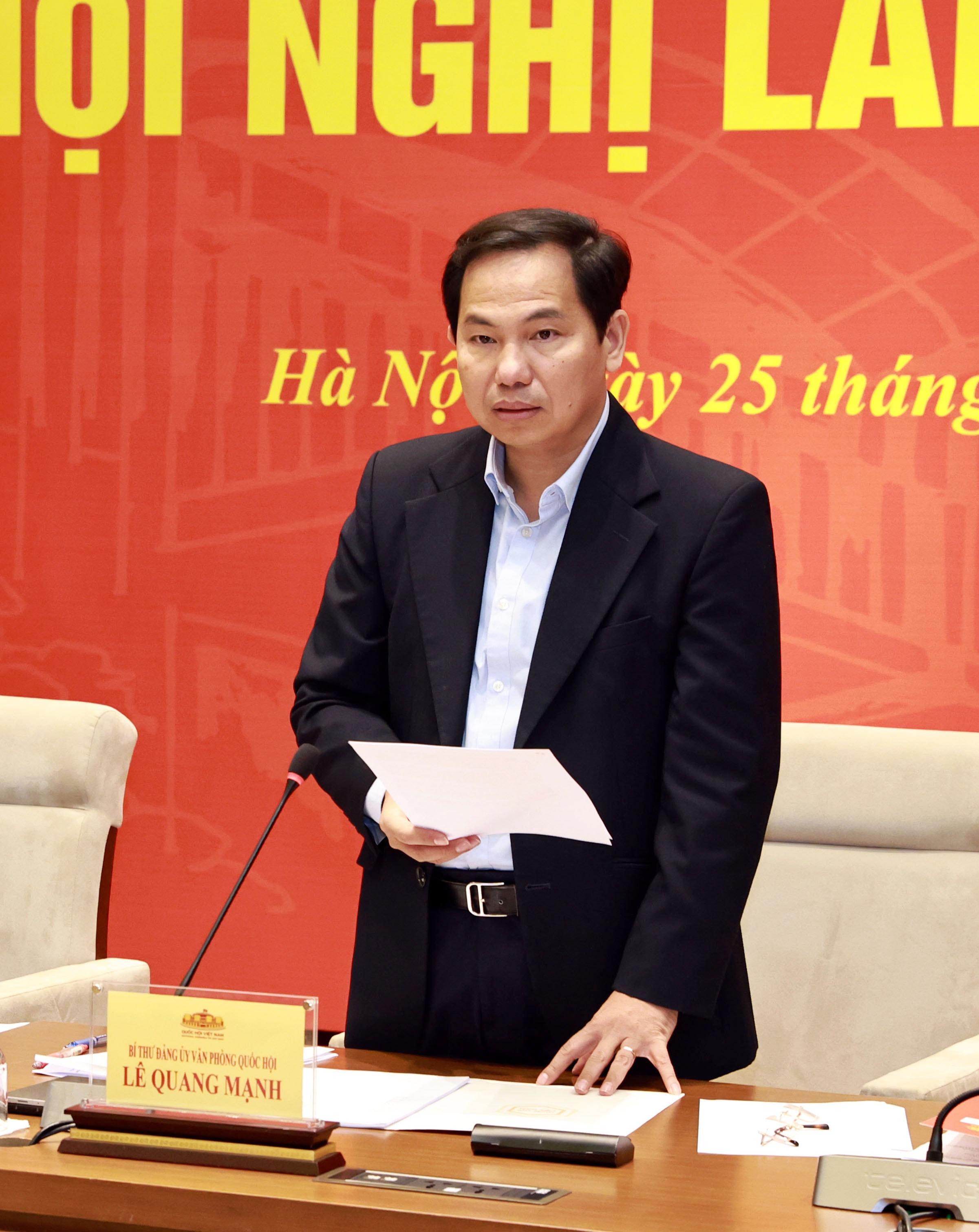 Bí thư Đảng ủy Văn phòng Quốc hội, Tổng Thư ký Quốc hội, Chủ nhiệm Văn phòng Quốc hội Lê Quang Mạnh chủ trì Hội nghị
