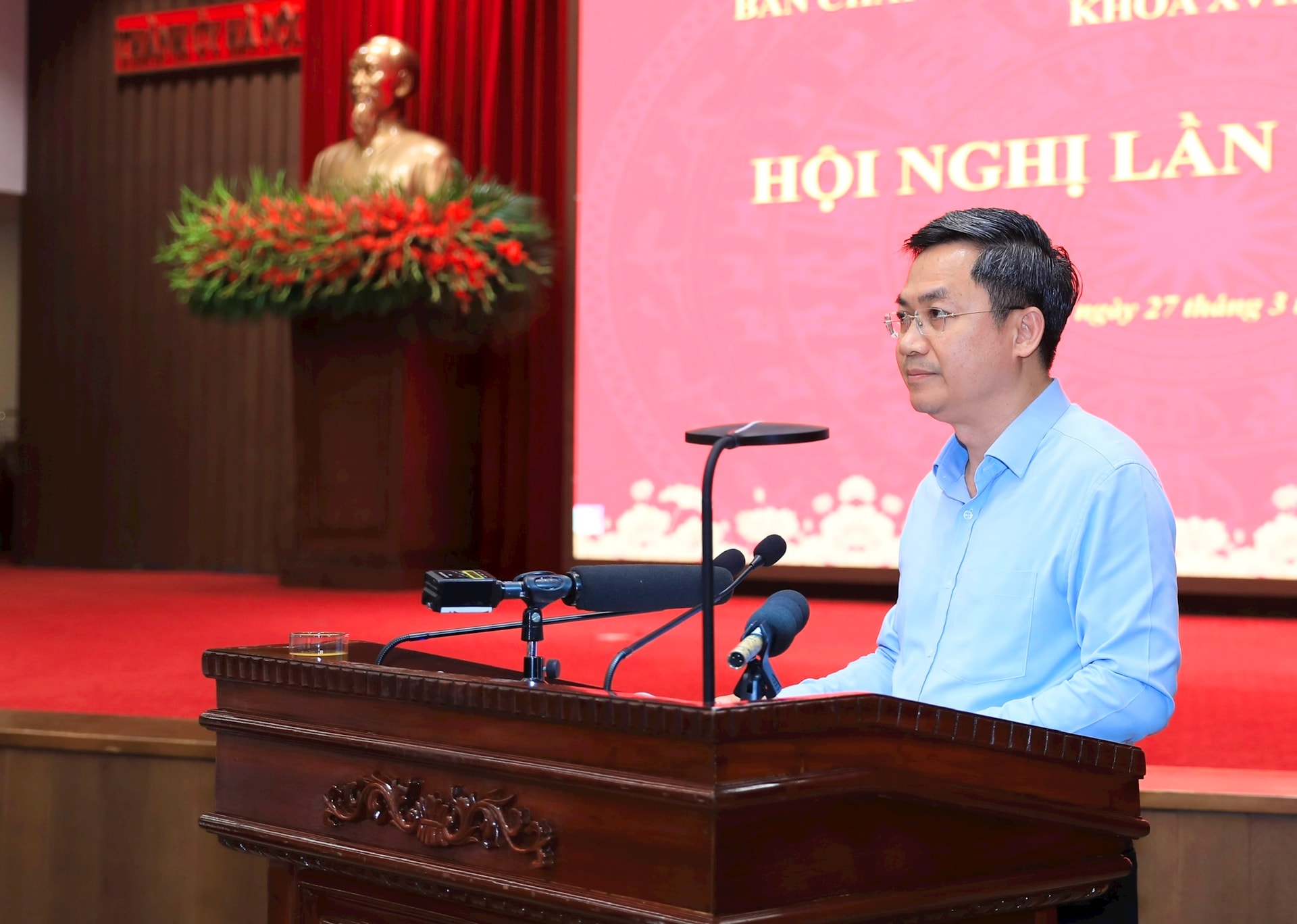 Tại hội nghị, Ủy viên Ban Thường vụ Thành ủy, Trưởng ban Tổ chức Thành ủy Hà Minh Hải đã trình bày Tờ trình về dự thảo Đề án “Nâng cao năng lực lãnh đạo, sức chiến đấu của các cấp ủy Đảng; phát huy vai trò tiên phong, gương mẫu, trách nhiệm của cán bộ, đảng viên, nhất là người đứng đầu trong kỷ nguyên mới”.
