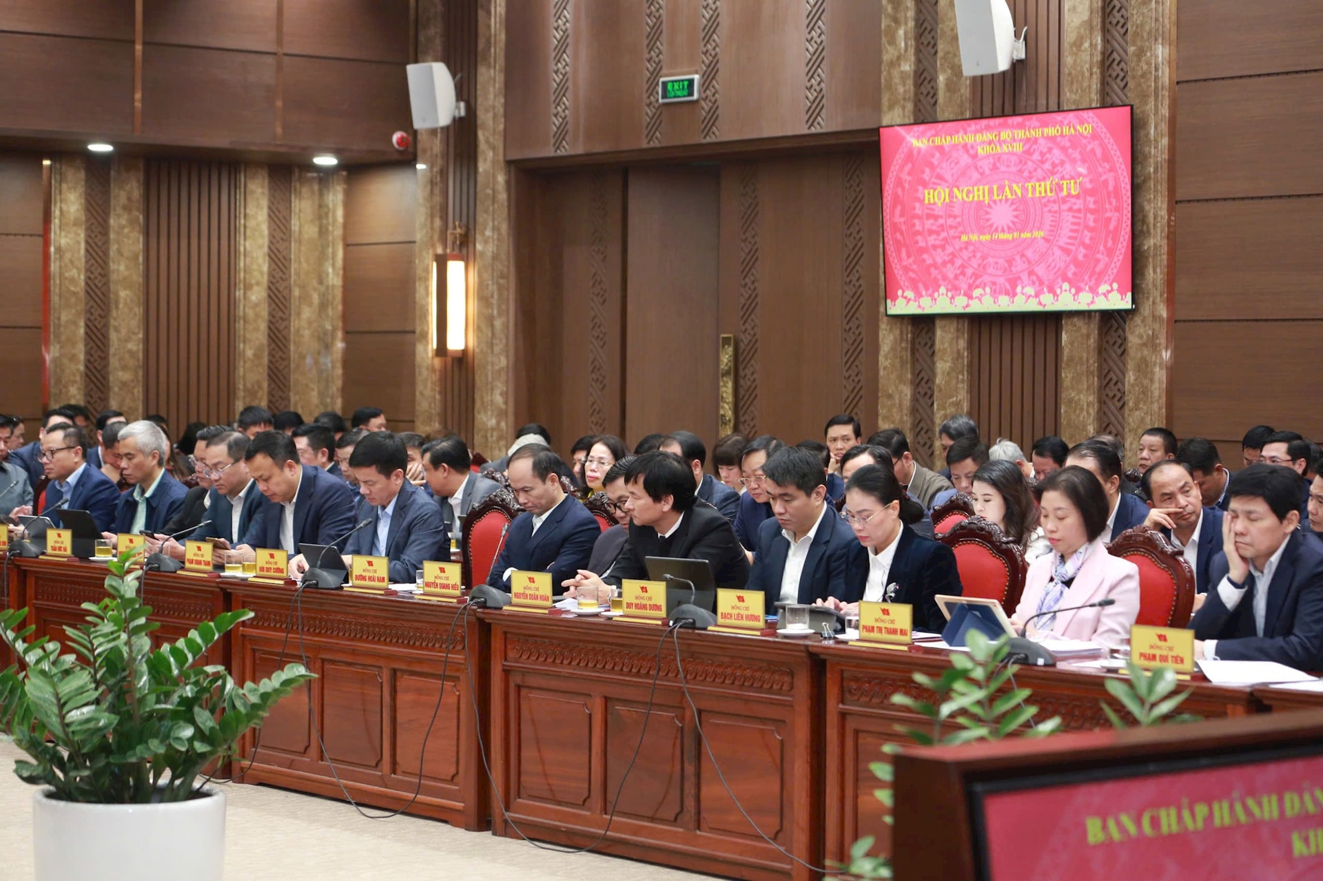 Tiếp đó, Phó Bí thư Thường trực Thành ủy Nguyễn Văn Phong đã trình bày dự thảo Nghị quyết Hội nghị lần thứ tư Ban Chấp hành Đảng bộ thành phố Hà Nội khóa XVIII; sau đó, Hội nghị đã thông qua nghị quyết.