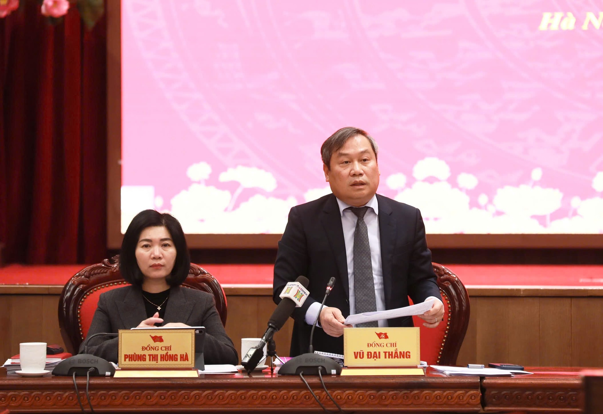 Phó Bí thư Thành ủy, Chủ tịch UBND thành phố Hà Nội Vũ Đại Thắng phát biểu tại hội nghị. Ảnh: Thành Thái