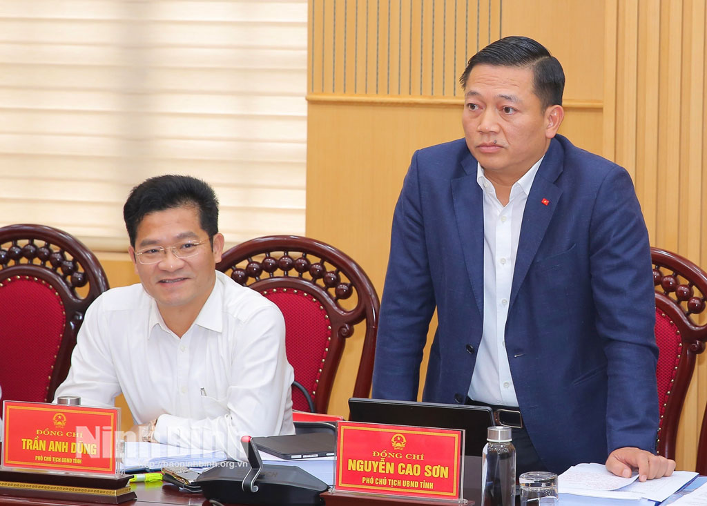 Đồng chí Nguyễn Cao Sơn, Tỉnh ủy viên, Phó Chủ tịch UBND tỉnh phát biểu tại hội nghị.