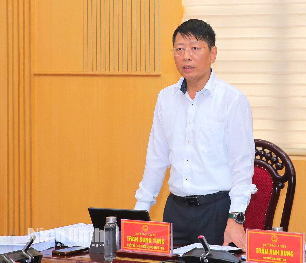 Đồng chí Trần Song Tùng, Ủy viên Ban Thường vụ Tỉnh ủy, Phó Chủ tịch Thường trực UBND tỉnh phát biểu tại hội nghị.