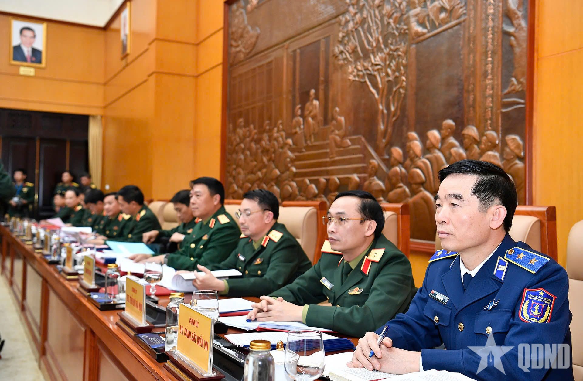 Đại tướng Phan Văn Giang, Ủy viên Bộ Chính trị, Phó bí thư Quân ủy Trung ương, Bộ trưởng Bộ Quốc phòng chủ trì hội nghị phiên làm việc buổi chiều.