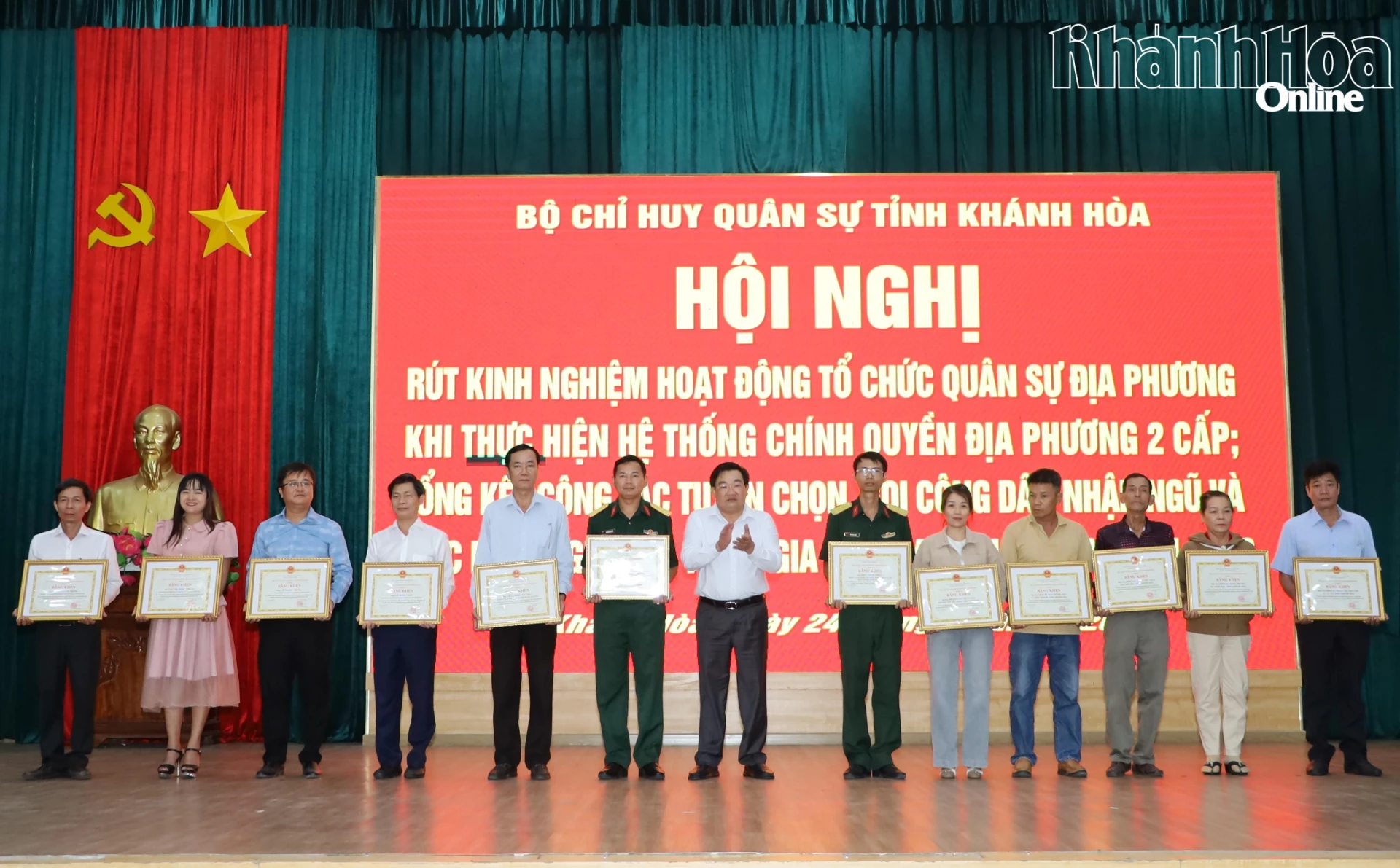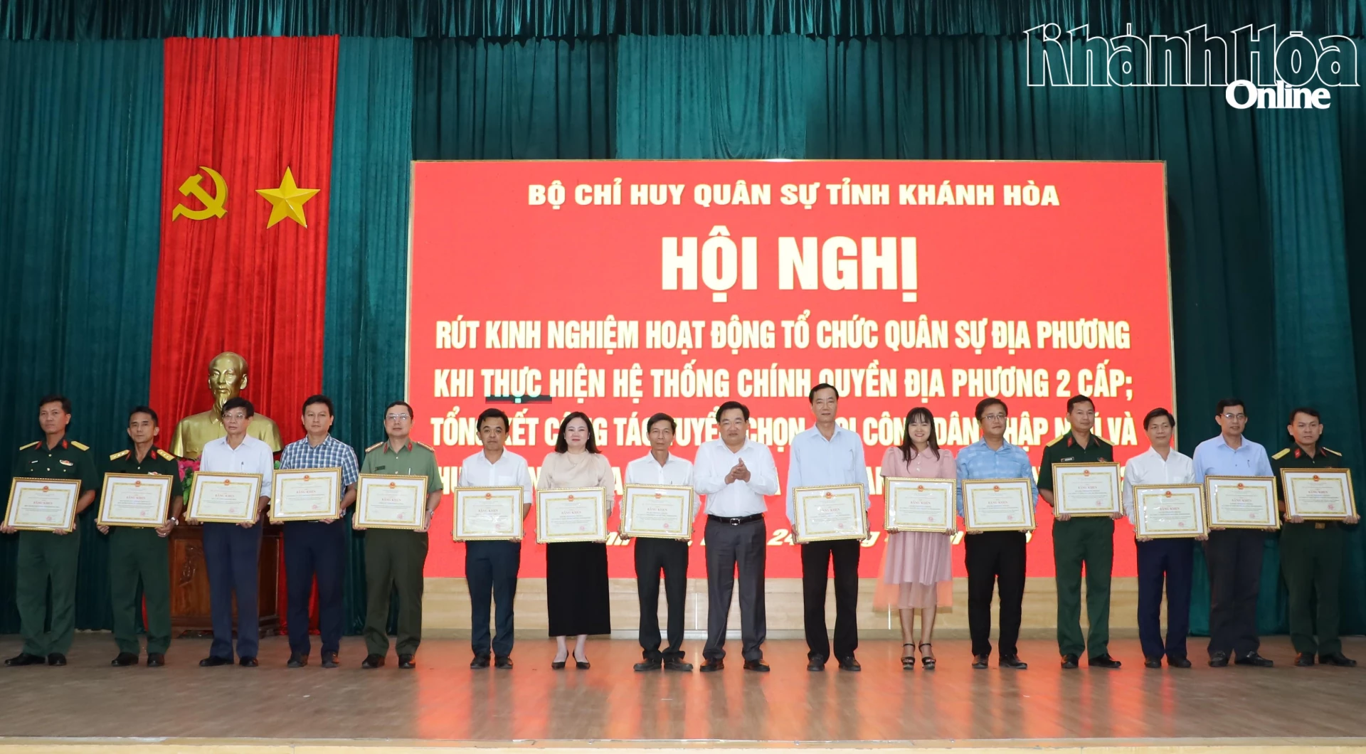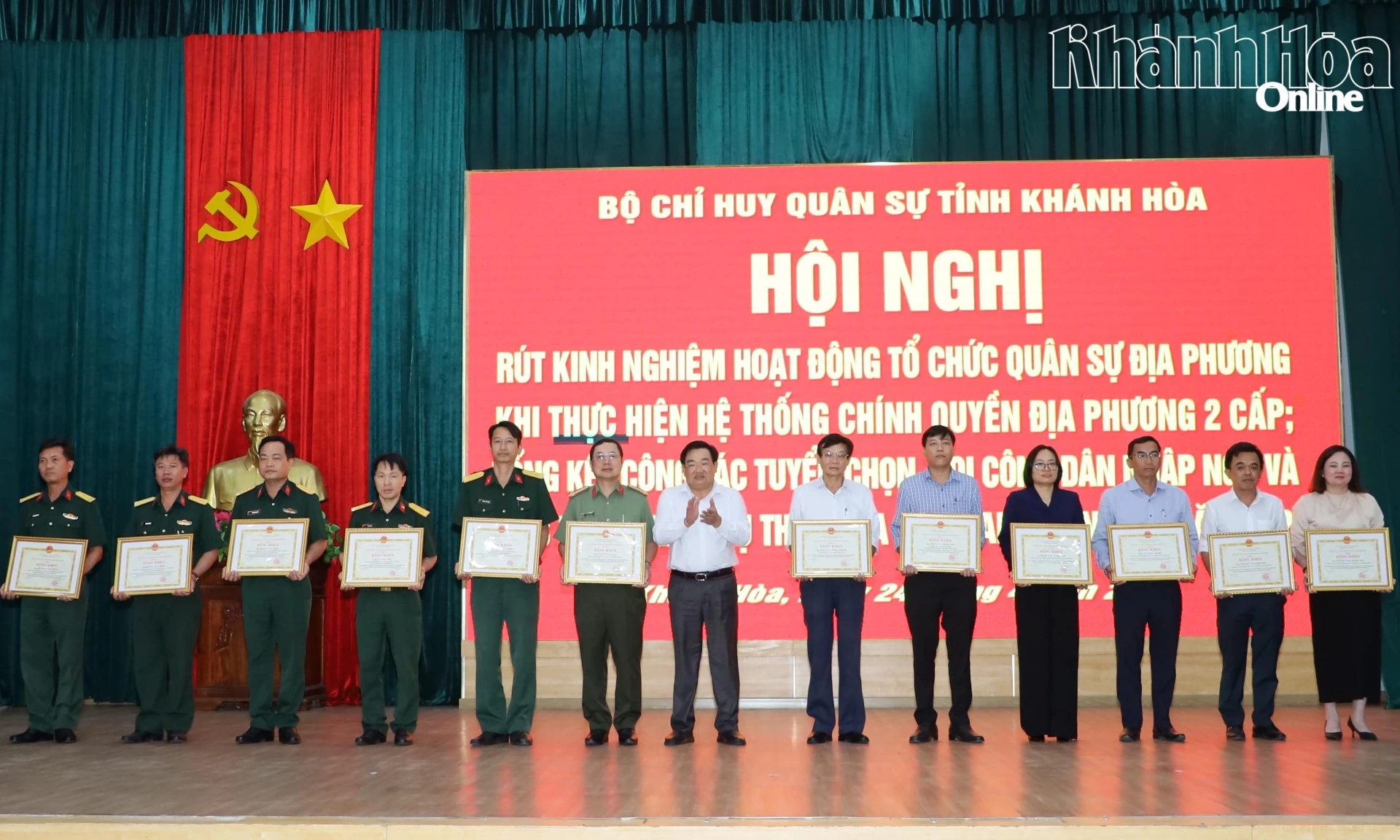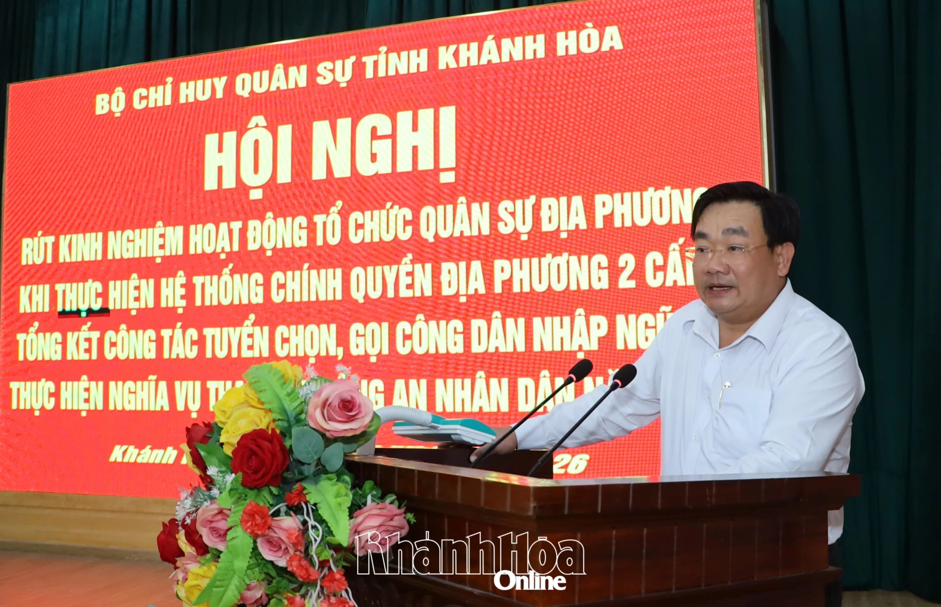 Sáng 24-4, Bộ Chỉ huy Quân sự tỉnh Khánh Hòa tổ chức hội nghị rút kinh nghiệm hoạt động tổ chức quân sự địa phương khi thực hiện hệ thống chính quyền địa phương 2 cấp; tổng kết công tác tuyển chọn, gọi công dân nhập ngũ và thực hiện nghĩa vụ tham gia Công an nhân dân năm 2026. Các đồng chí: Hồ Xuân Trường - Ủy viên dự khuyết Trung ương Đảng, Phó Bí thư Thường trực Tỉnh ủy; Trịnh Minh Hoàng - Phó Chủ tịch UBND tỉnh; lãnh đạo Quân khu 5, Bộ Chỉ huy Quân sự tỉnh, Công an tỉnh và các sở, ngành, địa phương đến dự.