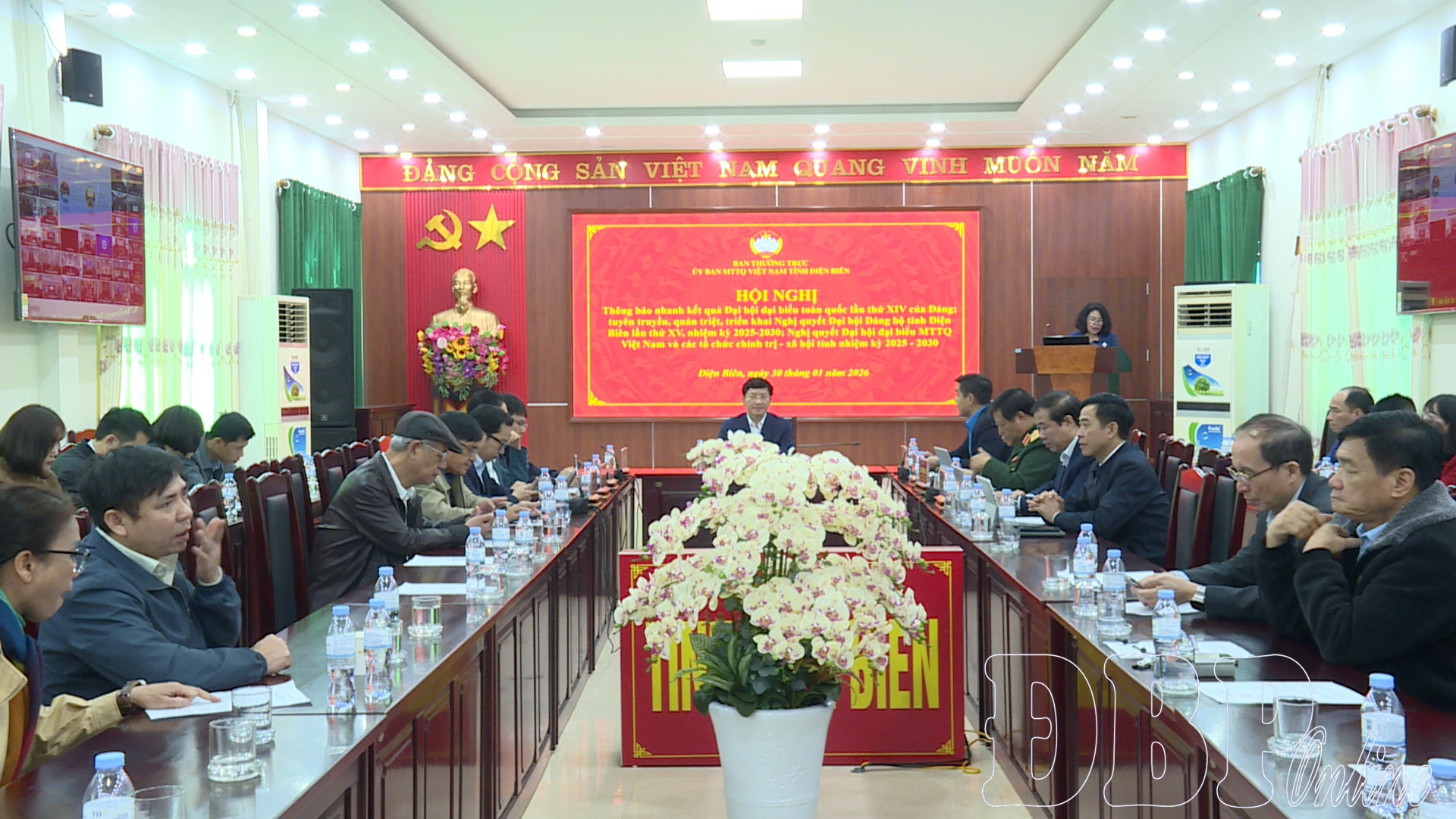 Tại hội nghị, đồng chí Mùa A Vảng đã thông báo nhanh kết quả Đại hội đại biểu toàn quốc lần thứ XIV của Đảng. Thông báo nêu rõ: Với phương châm “Đoàn kết - Dân chủ - Kỷ cương - Đột phá - Phát triển", Đại hội XIV của Đảng diễn ra từ ngày 19 - 23/1 tại Thủ đô Hà Nội với sự tham dự của 1.586 đại biểu, đại diện cho hơn 5,6 triệu đảng viên trong toàn Đảng. Sau 5 ngày làm việc nghiêm túc, trách nhiệm, khoa học, đoàn kết, dân chủ và đổi mới, Đại hội đã thành công rất tốt đẹp, đánh dấu chặng đường phát triển mới của đất nước. Đại hội đã tiến hành bầu một lần đủ 180 Ủy viên BCH Trung ương Đảng và 20 Ủy viên dự khuyết BCH Trung ương Đảng khóa XIV. Hội nghị lần thứ nhất BCH Trung ương Đảng khóa XIV đã bầu Bộ Chính trị gồm 19 đồng chí; đồng chí Tô Lâm, Tổng Bí thư BCH Trung ương Đảng khóa XIII, tiếp tục được bầu giữ chức Tổng Bí thư BCH Trung ương Đảng khóa XIV.