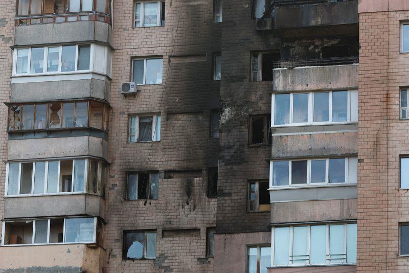 Một tòa nhà dân cư tại Kiev bị hư hại trong cuộc tấn công của Nga ngày 22-10. Ảnh: Reuters