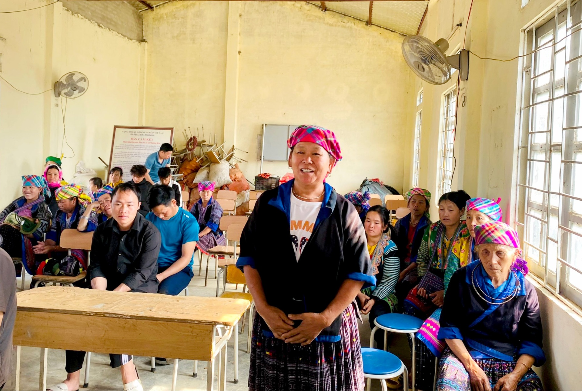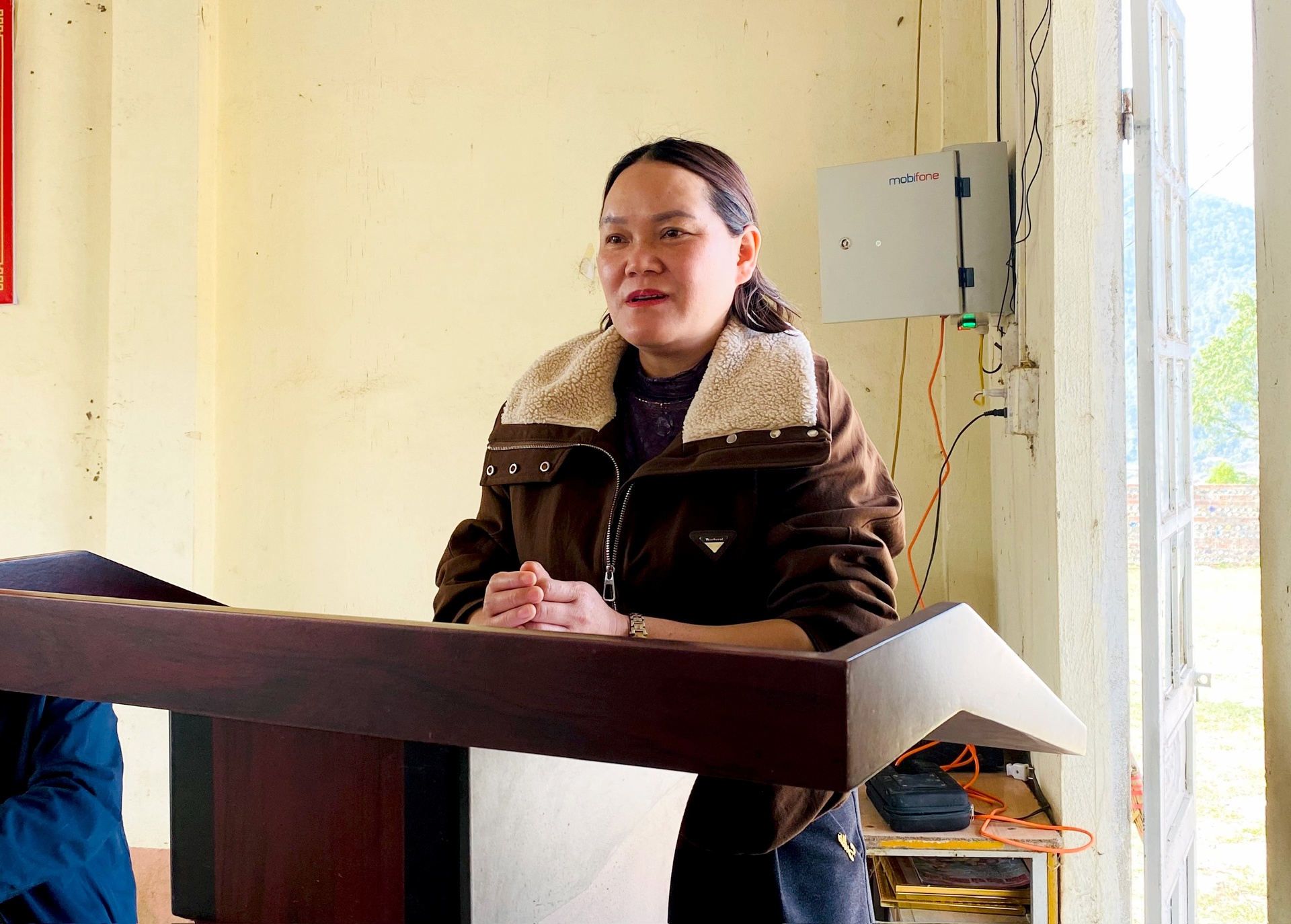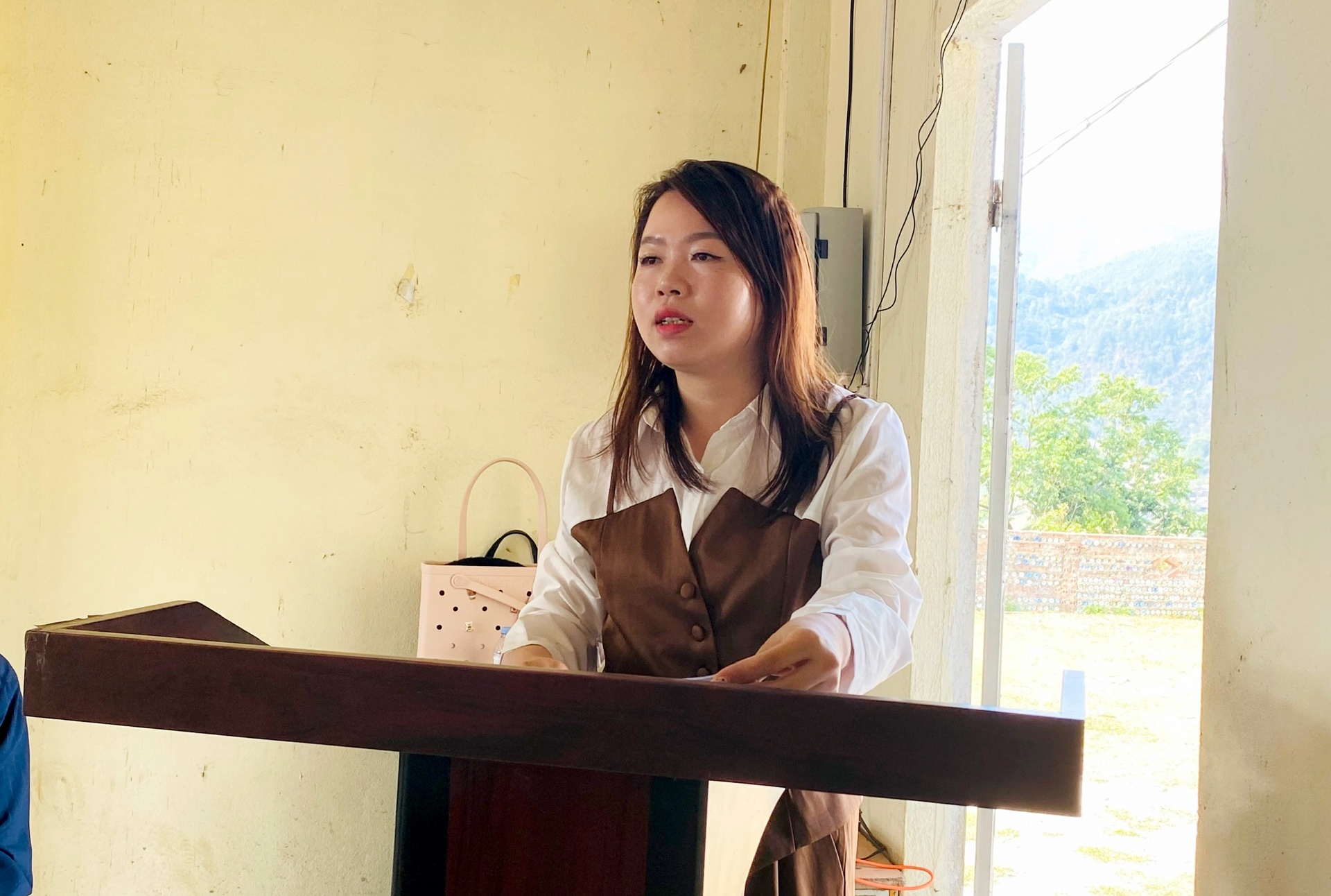 Đồng chí Lò Thị Vọng - Phó Chủ tịch Ủy ban MTTQ Việt Nam xã, Chủ tịch Hội Liên hiệp Phụ nữ xã Mường Kim trình bày chương trình hành động tại hội nghị.