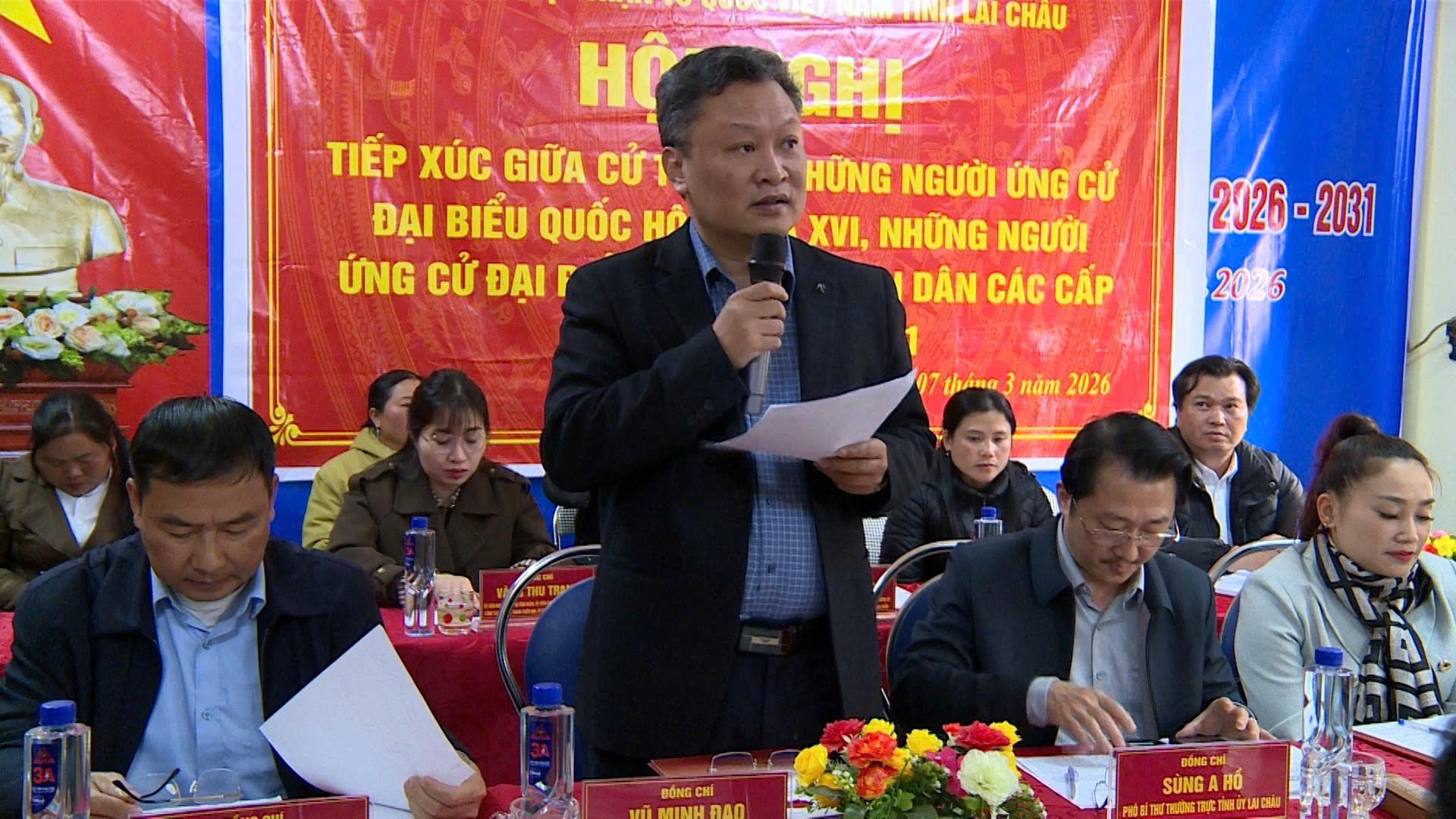 Đồng chí Vũ Minh Đạo – Vụ trưởng Vụ Văn hóa và Xã hội thuộc Ủy ban Văn hóa và Xã hội của Quốc hội nhấn mạnh, nếu được cử tri tín nhiệm bầu làm đại biểu Quốc hội khóa XVI, đồng chí sẽ cùng Đoàn đại biểu Quốc hội tỉnh Lai Châu thực hiện tốt vai trò, trách nhiệm của người đại biểu Nhân dân, là cầu nối giữa cử tri với Quốc hội trong xây dựng và hoàn thiện hệ thống pháp luật, cơ chế, chính sách. Đồng thời, tích cực tiếp xúc cử tri, lắng nghe và kịp thời phản ánh những vấn đề liên quan đến đời sống của Nhân dân; tăng cường giám sát các vấn đề cử tri quan tâm nhằm nâng cao đời sống người dân. Bên cạnh đó, kiến nghị các chính sách hỗ trợ học sinh bán trú, tạo điều kiện giữ chân giáo viên vùng khó; tiếp tục thực hiện hiệu quả các chính sách giảm nghèo, chăm sóc người cao tuổi, bảo đảm quyền lợi trong thụ hưởng bảo hiểm y tế, đồng thời quan tâm bảo tồn và phát huy bản sắc văn hóa các dân tộc gắn với phát triển kinh tế – xã hội địa phương.