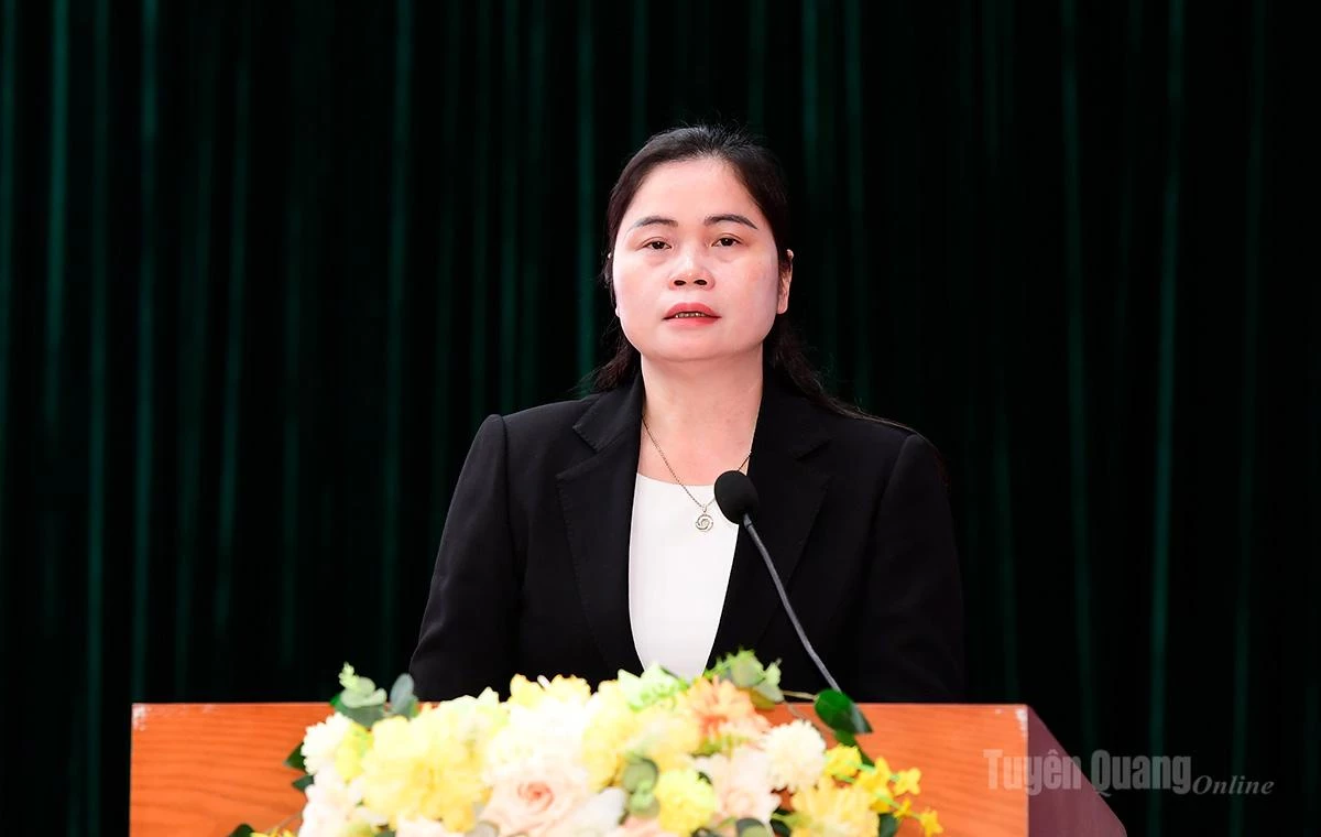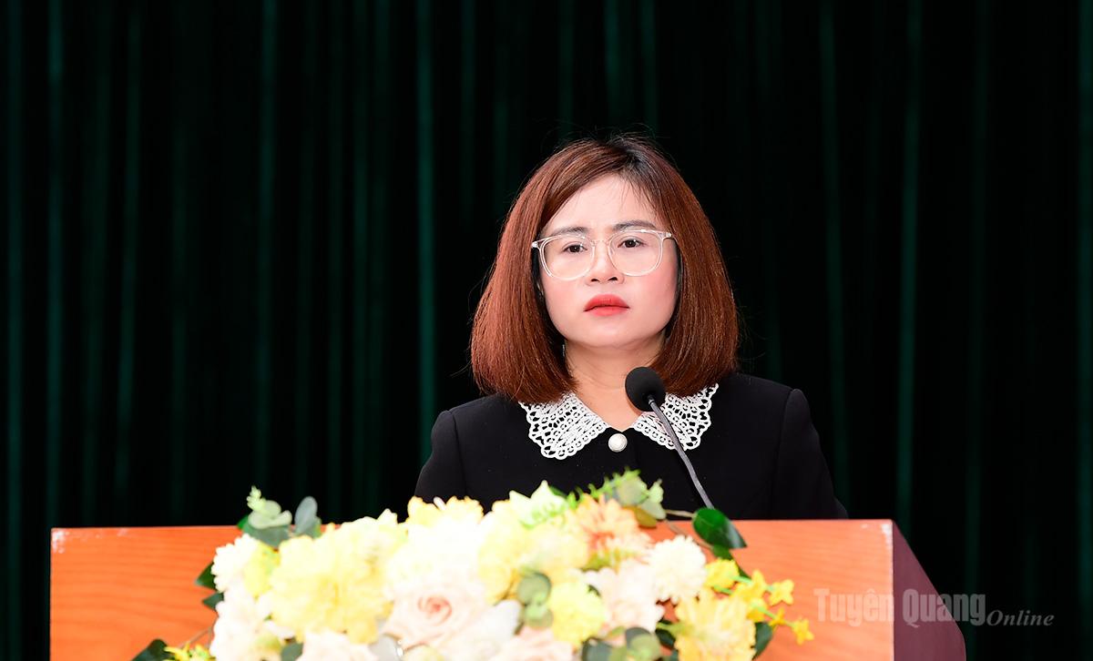 Ứng cử viên đại biểu HĐND tỉnh Tăng Thị Hà, Phó Giám đốc Báo và phát thanh, truyền hình Tuyên Quang trình bày chương trình hành động cá nhân.