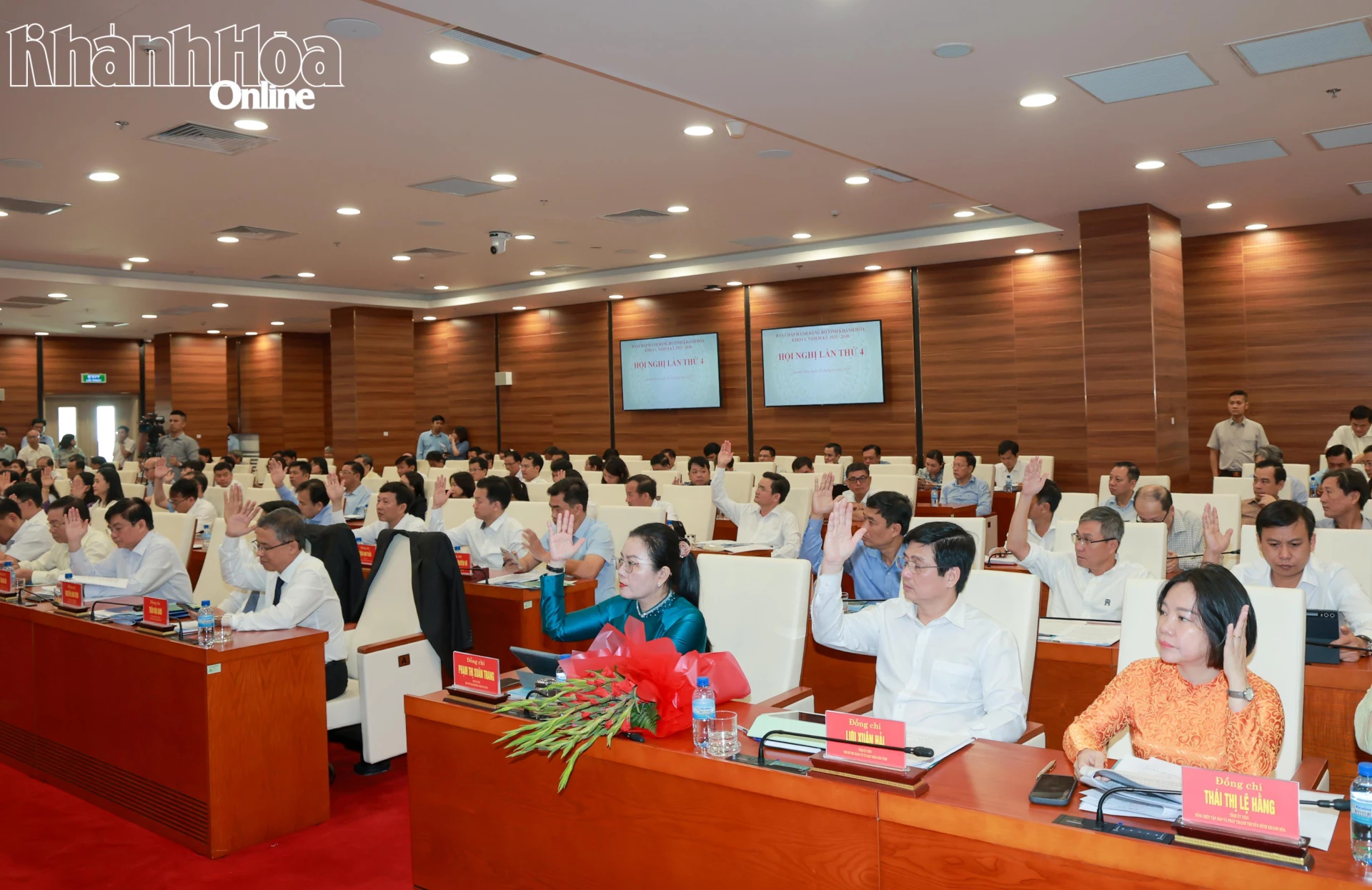 Ngày 9-4, Ban Chấp hành (BCH) Đảng bộ tỉnh Khánh Hòa tổ chức Hội nghị lần thứ 4, nhiệm kỳ 2025 - 2030 nhằm thảo luận, đánh giá kết quả công tác xây dựng Đảng, phát triển kinh tế - xã hội quý I/2026, đề ra nhiệm vụ, mục tiêu trọng tâm quý II. Các đồng chí: Trần Phong - Ủy viên Trung ương Đảng, Bí thư Tỉnh ủy; Hồ Xuân Trường - Ủy viên dự khuyết Trung ương Đảng, Phó Bí thư Thường trực Tỉnh ủy; Lâm Đông - Phó Bí thư Tỉnh ủy, Chủ tịch HĐND tỉnh; Nguyễn Việt Hùng - Phó Bí thư Tỉnh ủy, Chủ tịch UBND tỉnh; Nguyễn Khắc Hà - Phó Bí thư Tỉnh ủy, Chủ tịch Ủy ban MTTQ Việt Nam tỉnh chủ trì hội nghị. Tham dự hội nghị có các đồng chí trong Ban Thường vụ Tỉnh ủy, BCH Đảng bộ tỉnh; lãnh đạo các vụ thuộc Ban Tổ chức Trung ương, Ban Tuyên giáo và Dân vận Trung ương; lãnh đạo các sở, ban, ngành, địa phương trong tỉnh.