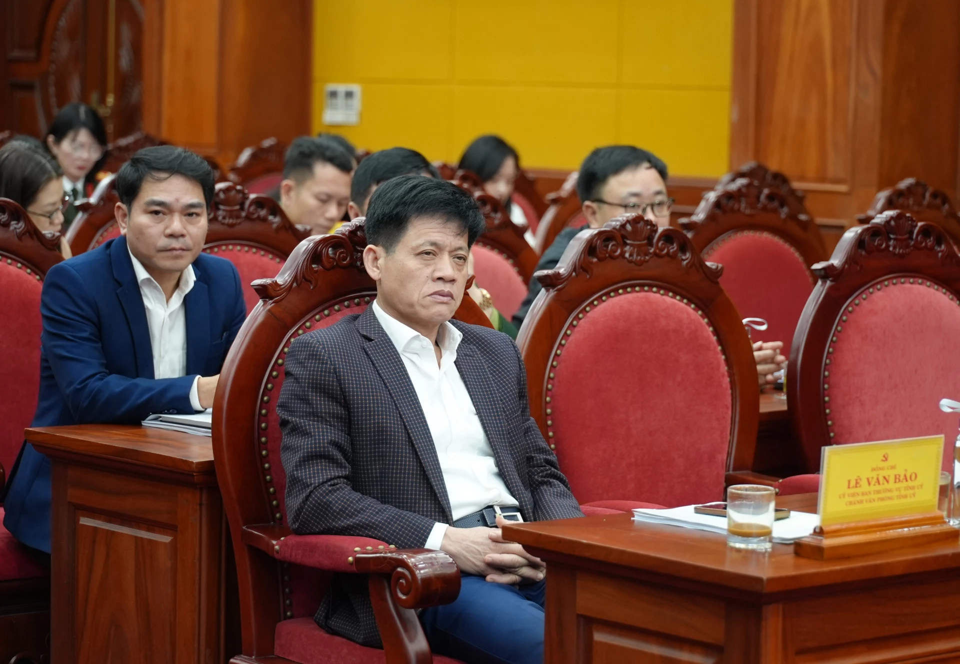Đồng chí Lê Văn Bảo, Chánh Văn phòng Tỉnh ủy, Phó Chủ tịch UBND tỉnh dự hội nghị tại điểm cầu Tỉnh ủy Quảng Trị - Ảnh: Trung Đức