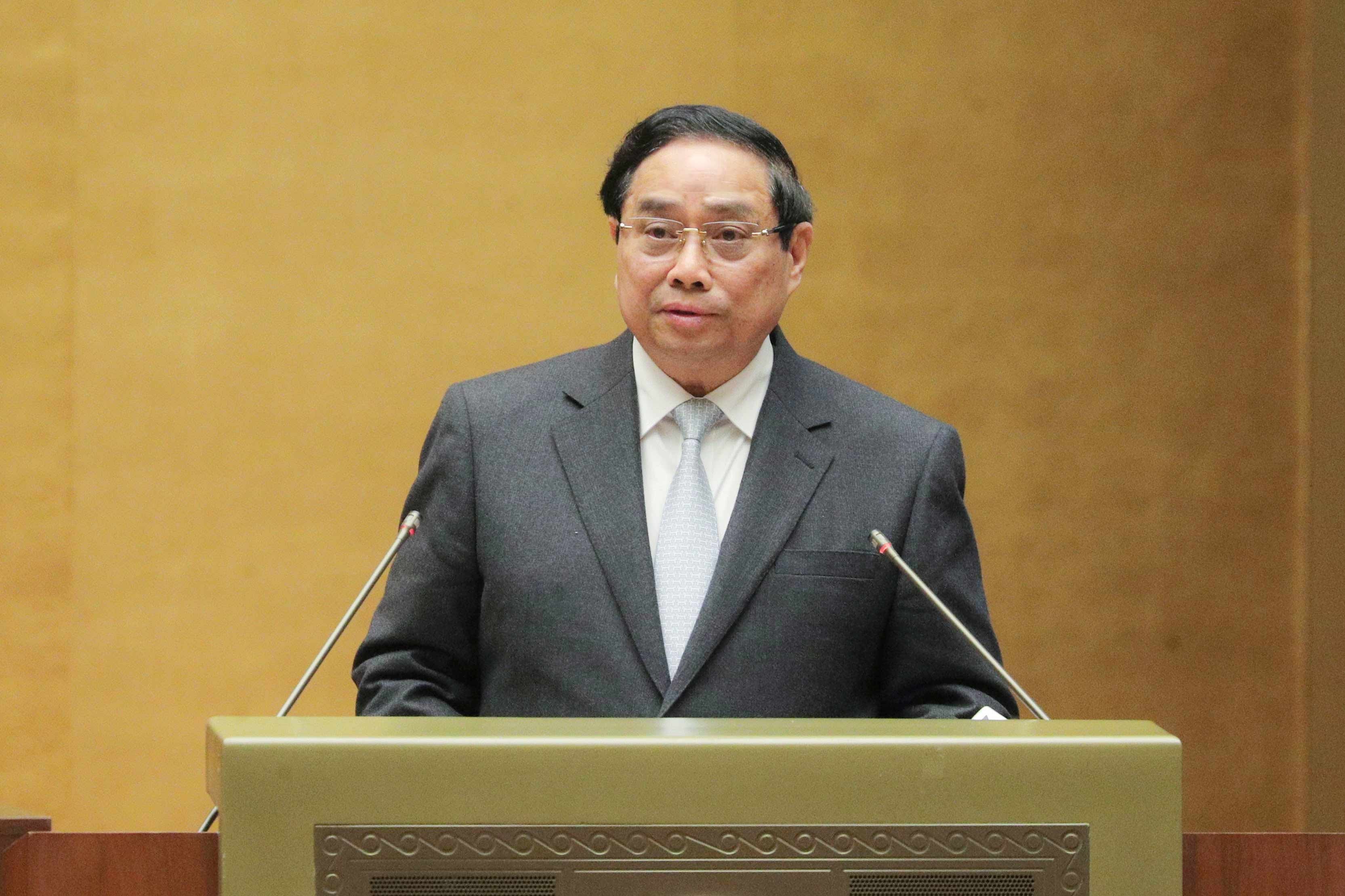 Thủ tướng Chính phủ Phạm Minh Chính báo cáo tại Hội nghị. Ảnh: Phạm Thắng