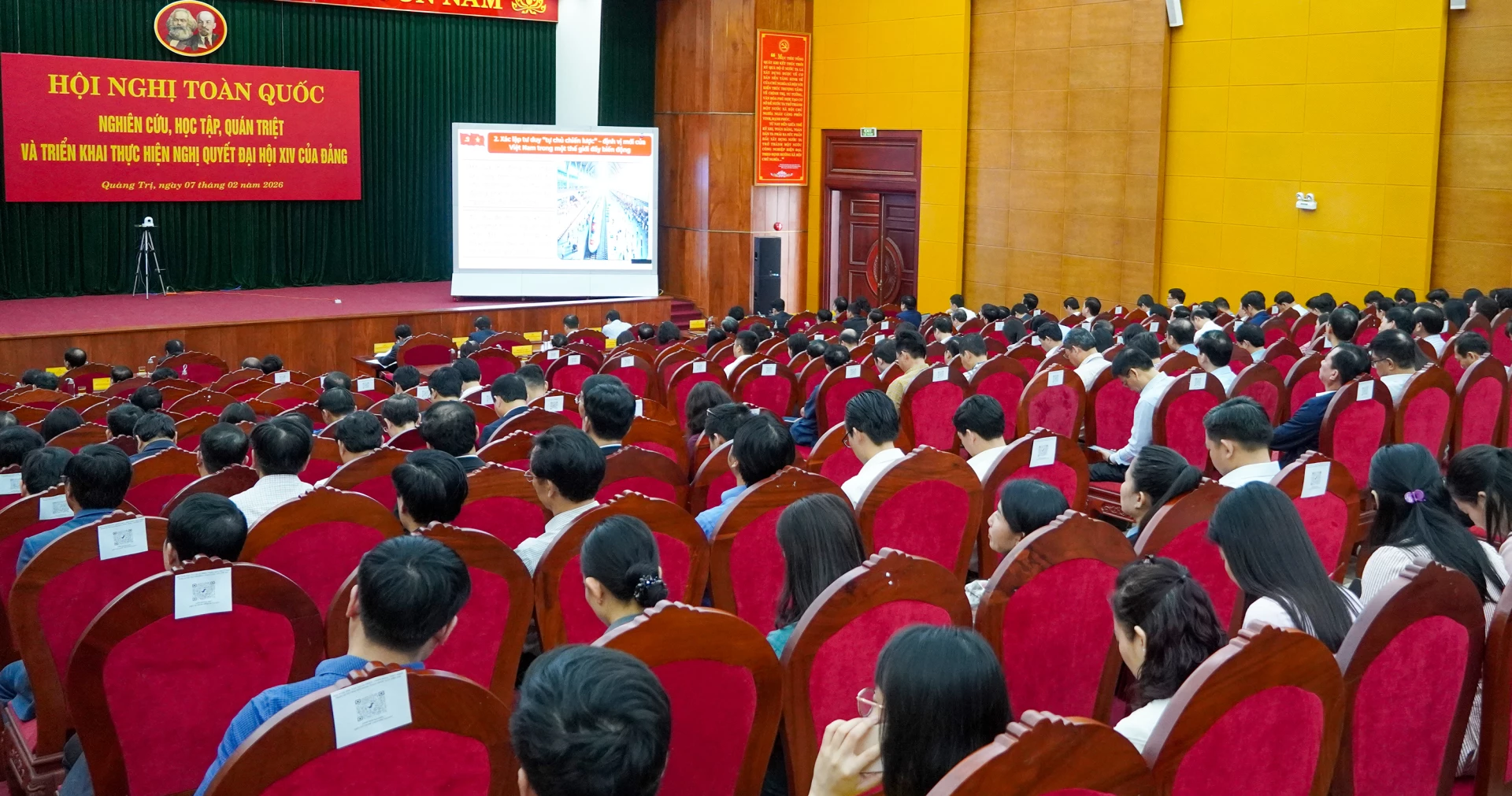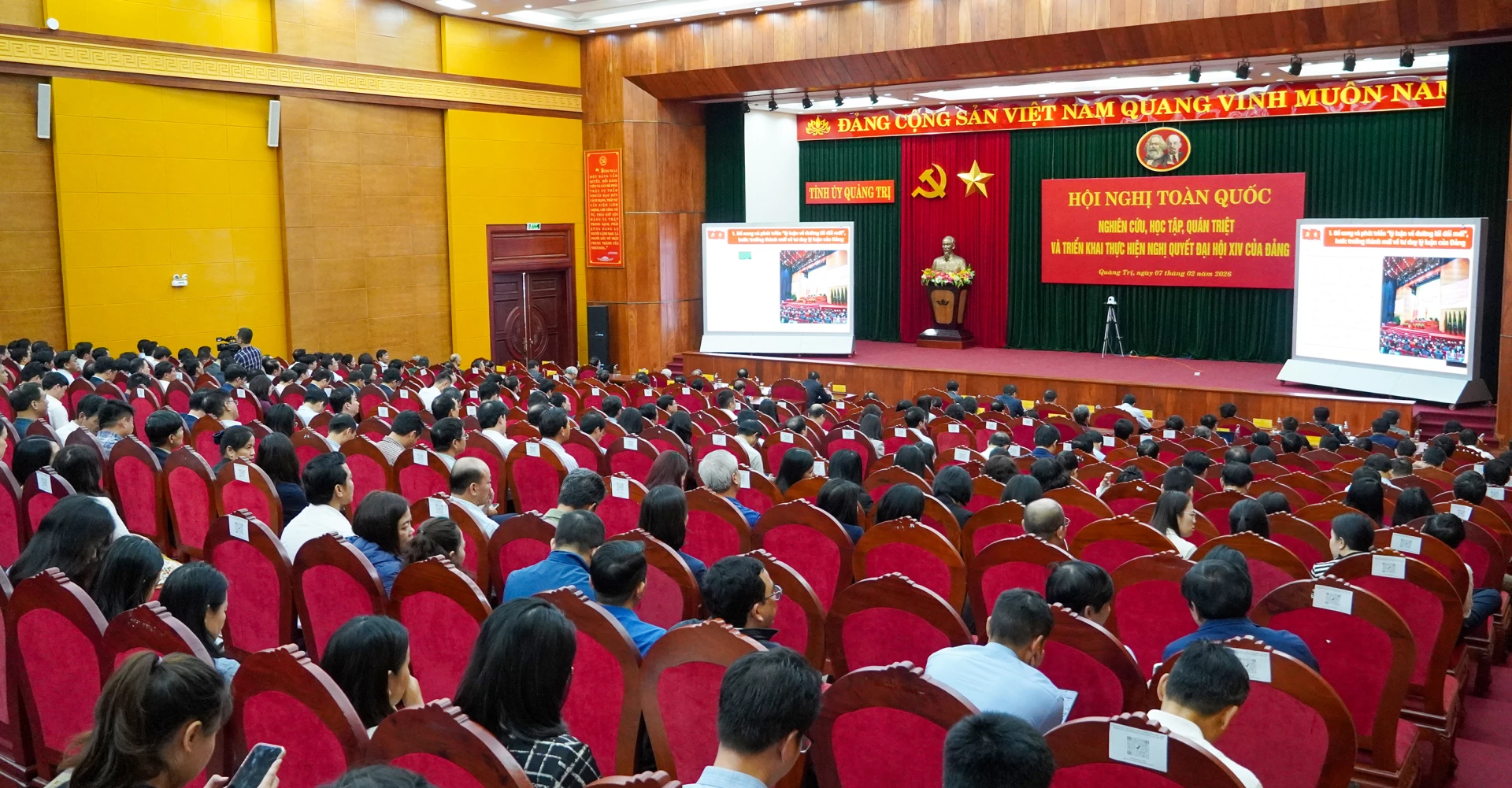 Dự hội nghị tại điểm cầu tỉnh Quảng Trị có các đồng chí: Nguyễn Văn Phương, Ủy viên Trung ương Đảng, Bí thư Tỉnh ủy; Trần Vũ Khiêm, Phó Bí thư Thường trực Tỉnh ủy; Nguyễn Đăng Quang, Phó Bí thư Tỉnh ủy, Chủ tịch HĐND tỉnh; Lê Hồng Vinh, Phó Bí thư Tỉnh ủy, Chủ tịch UBND tỉnh; các đồng chí nguyên lãnh đạo tỉnh qua các thời kỳ; các đồng chí Ủy viên Ban Thường vụ Tỉnh ủy, Ủy viên Ban Chấp hành Đảng bộ tỉnh; lãnh đạo các sở, ngành. Hội nghị cũng được kết nối đến điểm cầu các Đảng ủy trực thuộc Tỉnh ủy, các xã, phường, đặc khu, nhà văn hóa, tiểu khu, thôn, bản trên địa bàn tỉnh với 2.170 điểm học tập, với sự tham gia của 80.937 đảng viên.