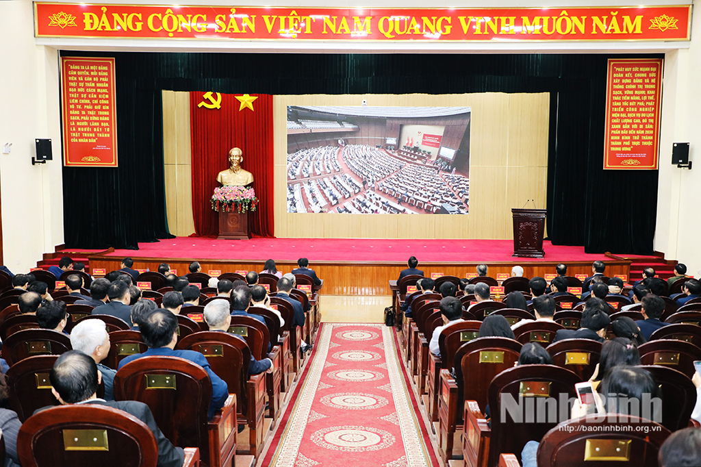 Trên 162 nghìn cán bộ, đảng viên trong tỉnh dự học tập, quán triệt Nghị quyết tại 5.200 điểm cầu trực tuyến và truyền hình trực tiếp trên sóng Đài Truyền hình Việt Nam, Đài Tiếng nói Việt Nam, Báo và phát thanh, truyền hình Ninh Bình, các nền tảng số.
