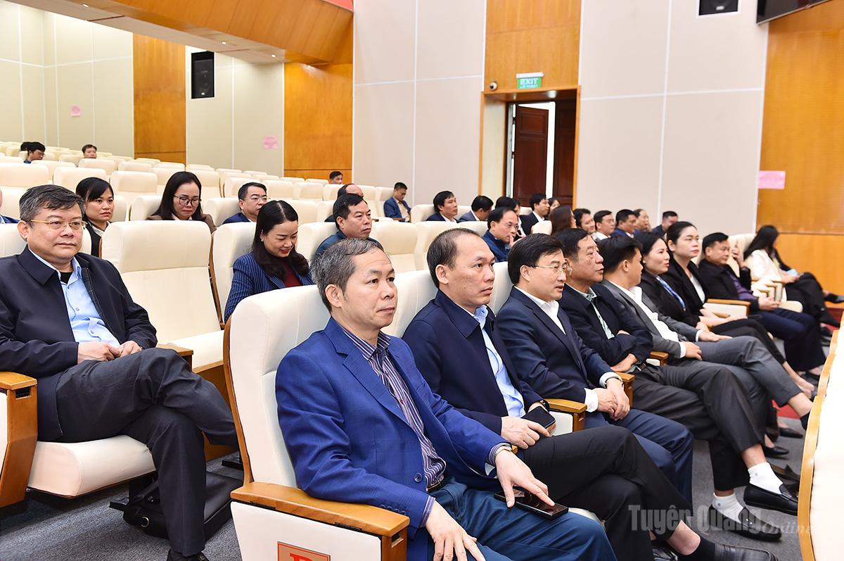Các đại biểu dự hội nghị tại điểm cầu Báo và phát thanh, truyền hình Tuyên Quang. Ảnh: Lý Thịnh.
