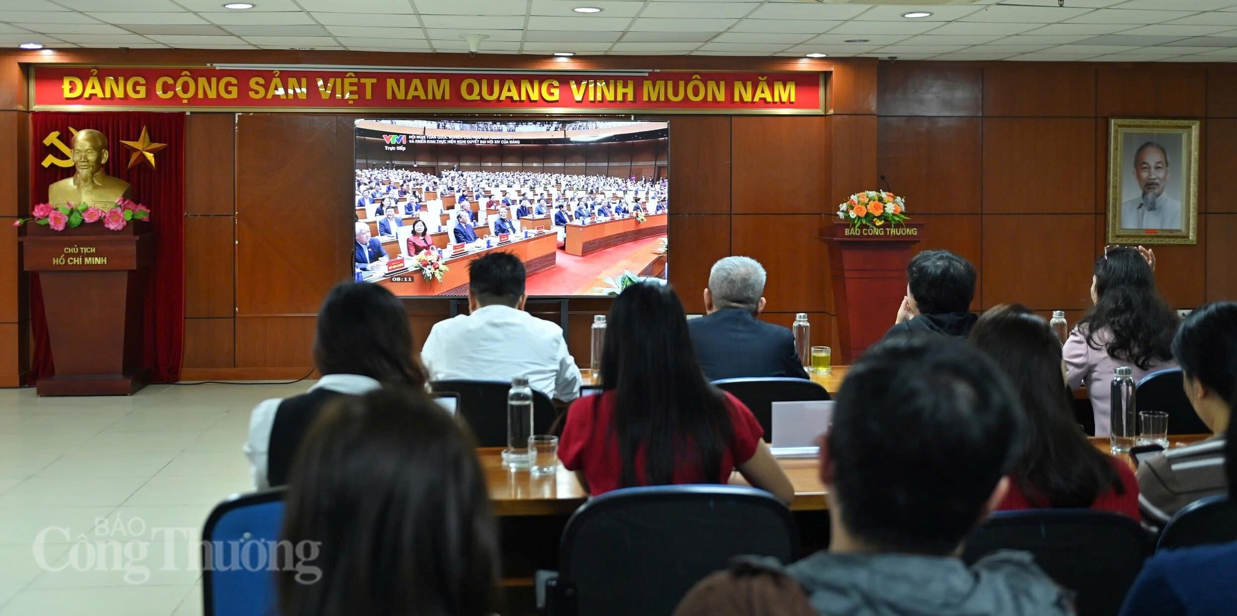 Tại điểm cầu Báo Công Thương, gồm 4 đơn vị: Báo Công Thương, Tạp chí Công Thương, Nhà xuất bản Công Thương; Trung tâm thông tin Công nghiệp và Thương mại. Ảnh: Nam Nguyễn
