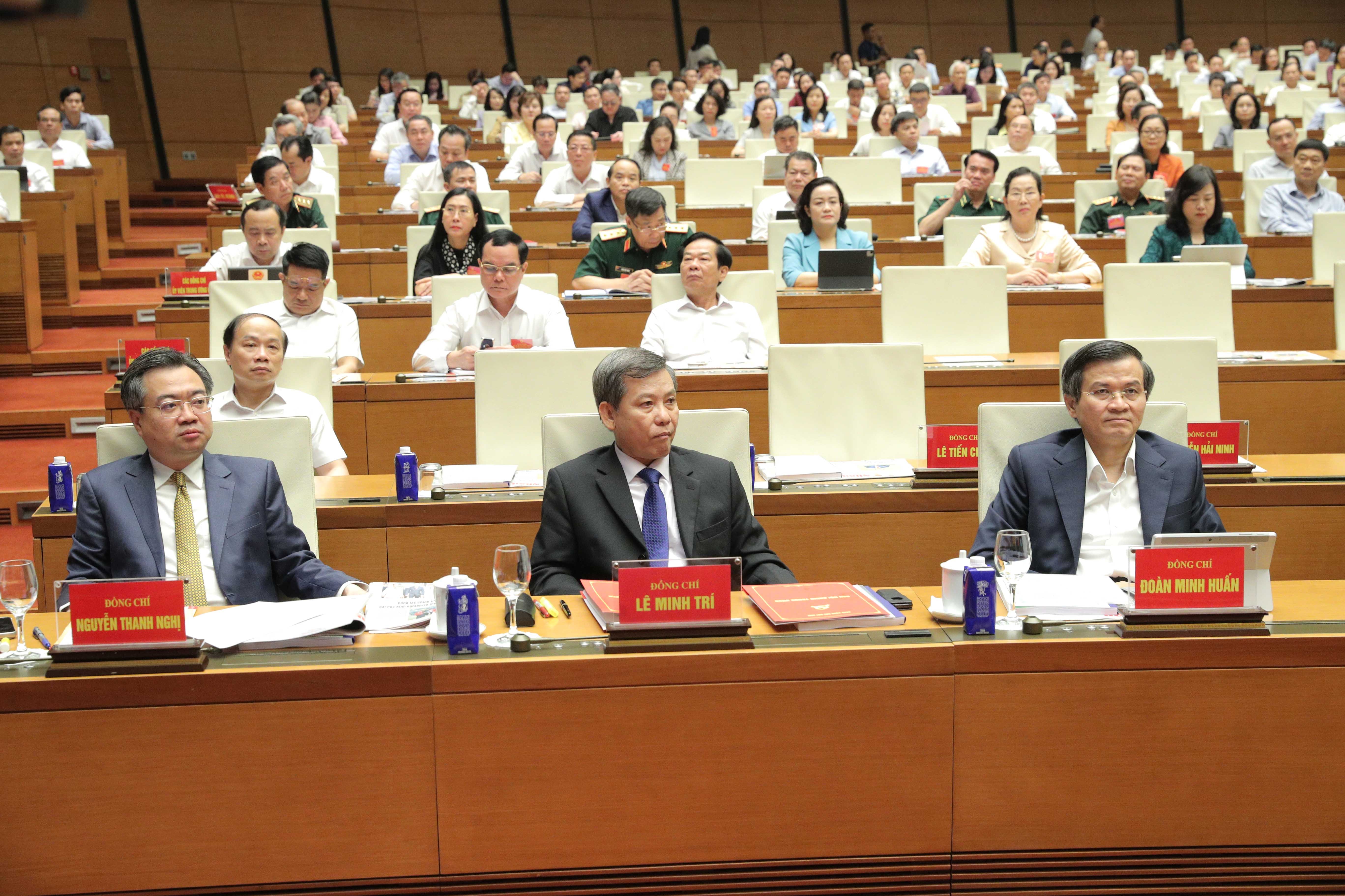 Các đại biểu dự hội nghị tại điểm cầu trụ sở Văn phòng Quốc hội - 35 Ngô Quyền, Hà Nội. Ảnh: Quang Khánh